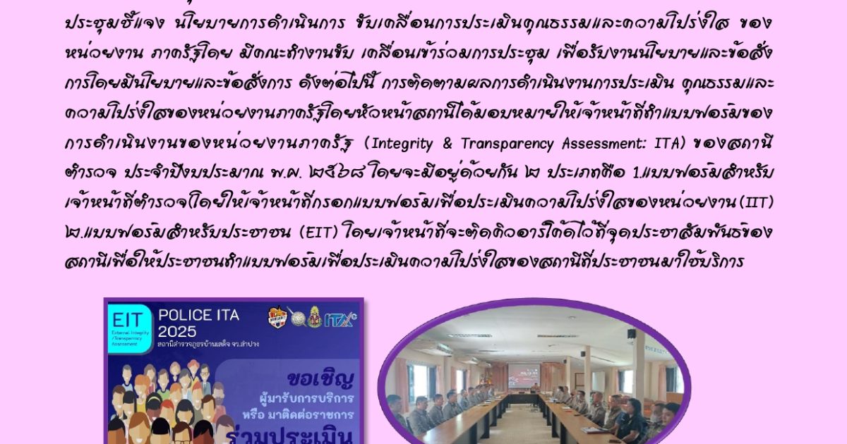 การประชุมขับเคลื่อนการประเมินคุณธรรมเเละความโปร่งใสของหน่วยงานภาครัฐ(ITA) ครั้งที่ 1
