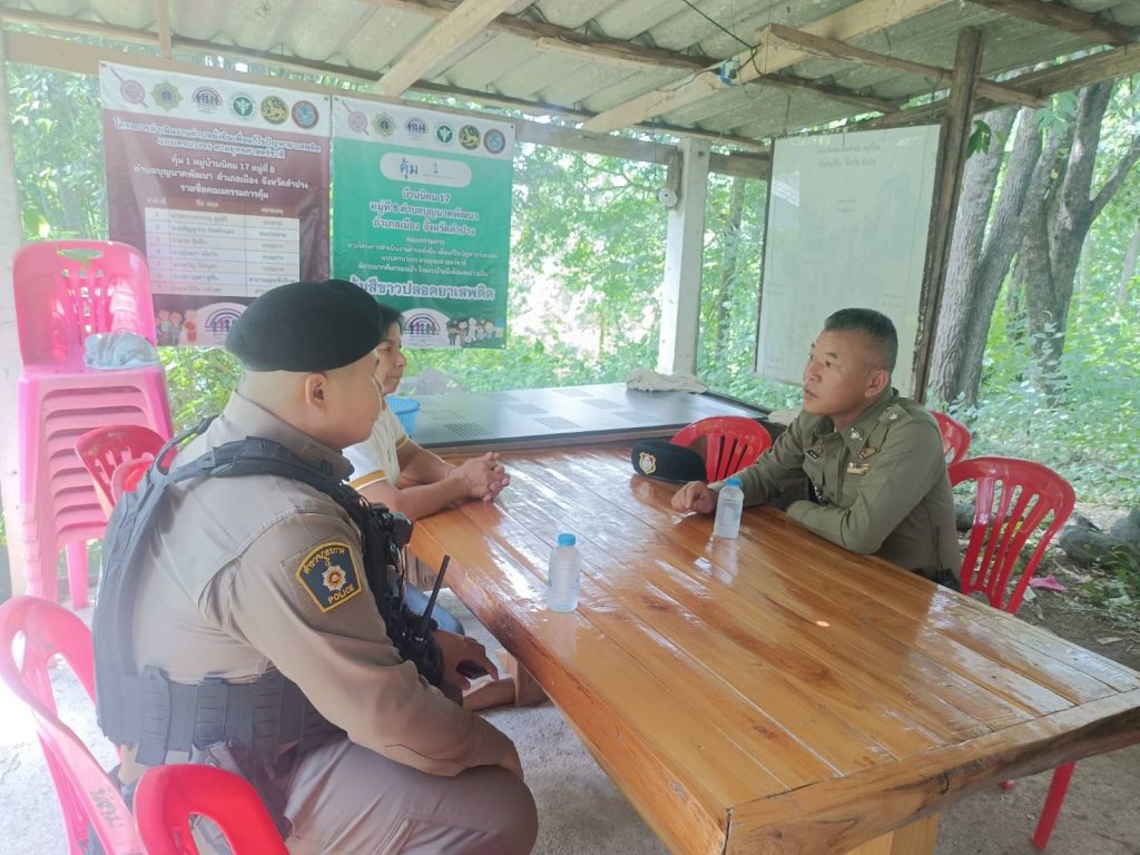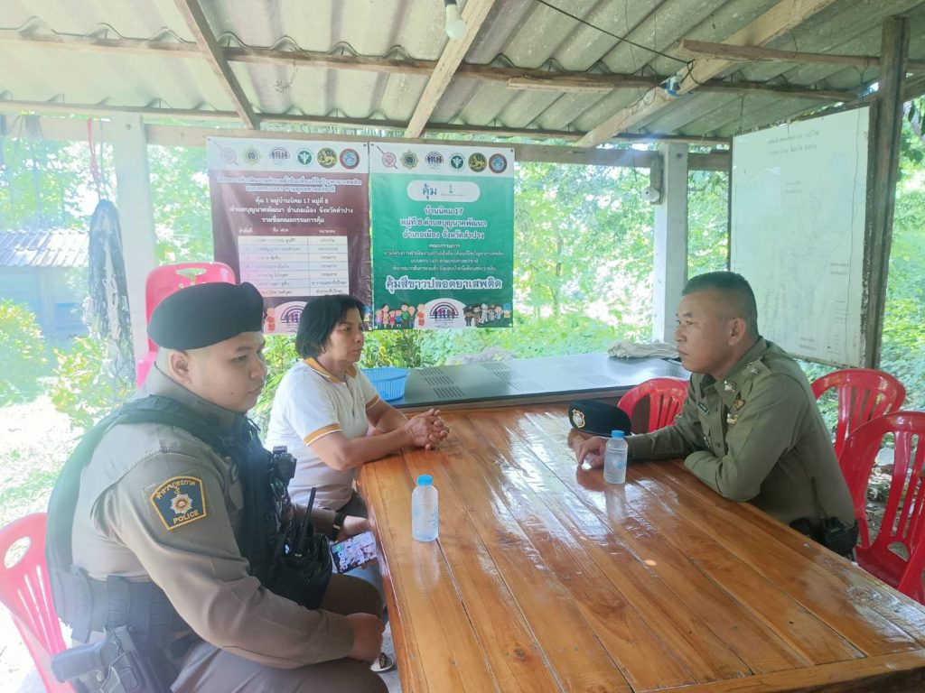 วันที่ 7 กรกฎาคม 2568 ตั้งแต่เวลา 09.30 – 10.30 น.นำโดยพ.ต.ท.กำจร ใจจันทร์ พร้อมชุดปฏิบัติการตำบลยั่งยืน ว.4 ลงพื้นที่ตรวจเยี่ยม และ ประสานผู้นำชุมชน ม.2 บ้านแลง,ม.8 บ้านนิคม 17 และ รพ.สต.บ้านหัววัง ขอความร่วมมือช่วยจัดสถานที่และประสานผู้มีรายชื่อเข้าร่วมกิจกรรมบำบัดฟื้นฟูผู้ติดยาเสพติด มาเข้าร่วมกิจกรรม ในวันอังคารที่ 8 กรกฎาคม 2568 ณ วัดบ้านแลง ต.บ้านแลง อ.เมือง จ.ลำปาง