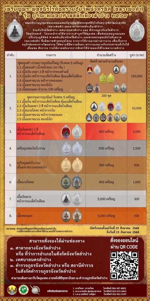 ชื่อบัญชี บูรณะมณฑปศาลหลักเมืองลำปาง – มณฑปหลวงพ่อดำ 2568