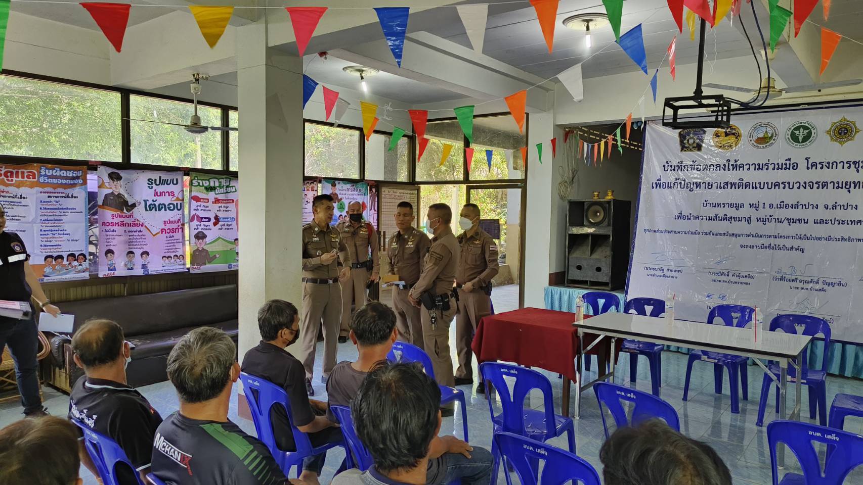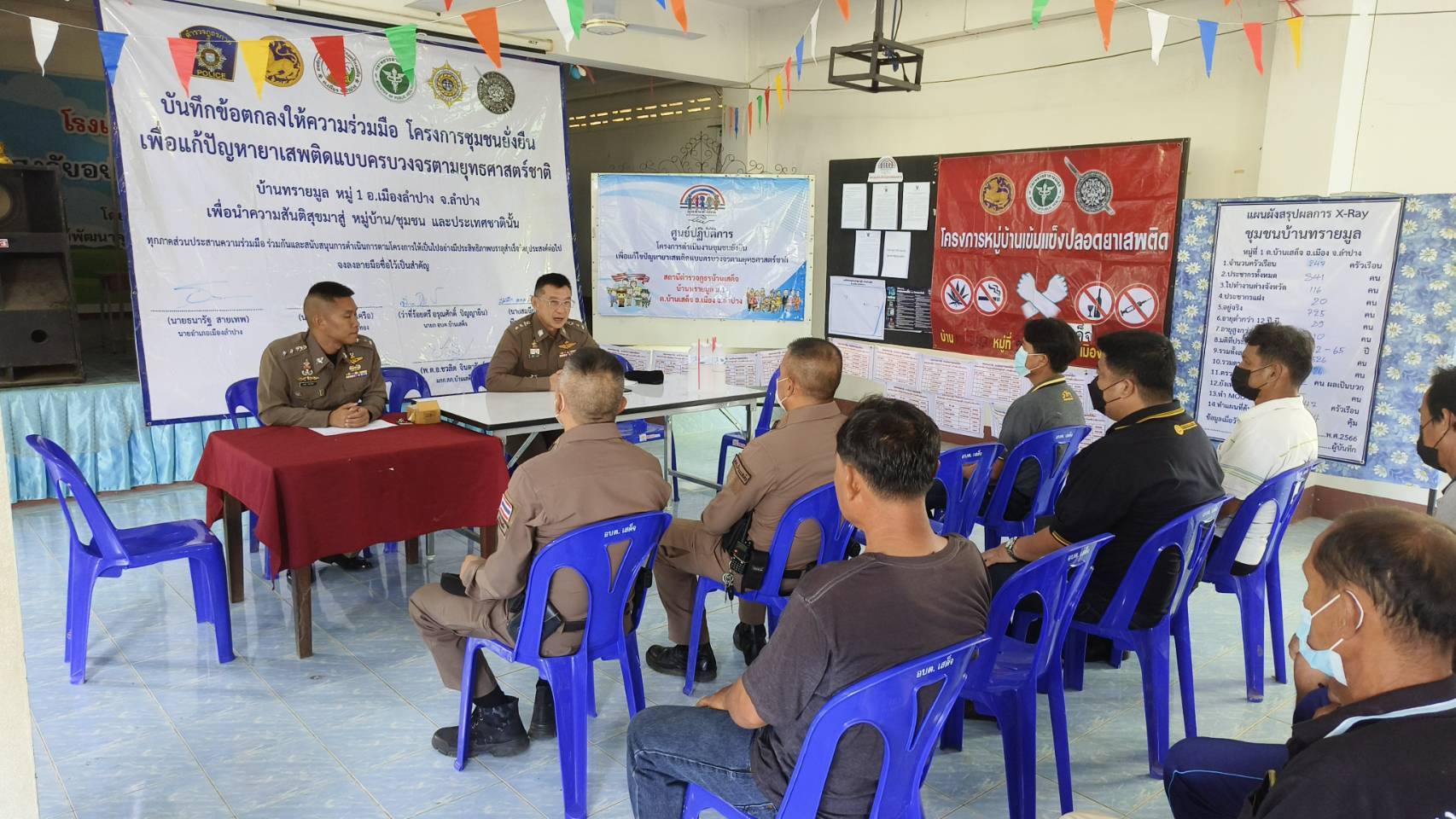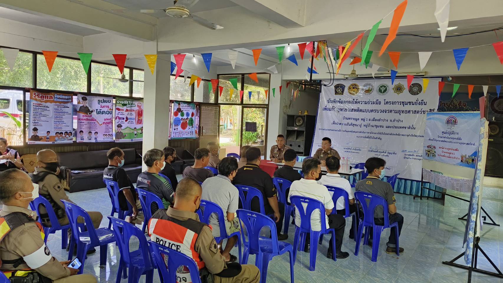 สภ.บ้านเสด็จ ภ.จว.ลำปาง วันที่ 29 มิ.ย.2566 เวลา 11.00 น. พ.ต.อ.ชูวิทย์ กองแก้ว รอง ผบก.ภ.จว .ลำปาง ,พ.ต.ท.หญิงชนัดดา บุญยฤทธิ์ รอง ผกก.ฝอ.ภ.จว.ลำปาง (รับผิดชอบงานยาเสพติด) พร้อมด้วยคณะ เดินทางมาตรวจติดตามและประเมินผลชุมชนยั่งยืนของ สภ.บ้านเสด็จ พบ พ.ต.อ.ชวลิต จินดารัตน์ ผกก.สภ.บ้านเสด็จ , พ.ต.ท.พงษ์ศิลป์ ธนะภาษี รอง ผกก.ป.ฯ/หน.ชป.ชุมชนยั่งยืน,รองนายก อบต.บ้านเสด็จ,ผู้ใหญ่บ้านทรายมูล ม.1 ,สารวัตรกำนัน,หัวหน้าคุ้มชุมชนยั่งยืน พร้อมด้วย ชุดปฏิบัติการชุมชนยั่งยืน สภ.บ้านเสด็จ และชาวบ้าน บ้านทรายมูล ม.1 ต.บ้านเสด็จ อ.เมือง จ.ลำปาง อยู่รอรับการตรวจติดตามประเมินผลการดำเนินการตามโครงการชุมชนยั่งยืน เพื่อแก้ไขปัญหายาเสพติดแบบครบวงจร ตามยุทธศาสตร์ชาติ ณ ศูนย์ปฏิบัติการชุมชนยั่งยืนบ้านทรายมูล ม.1 ต.บ้านเสด็จ อ.เมือง จ.ลำปาง