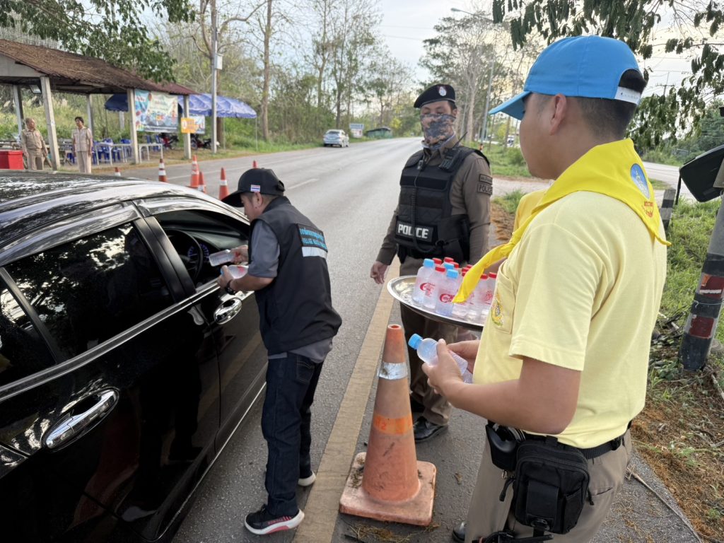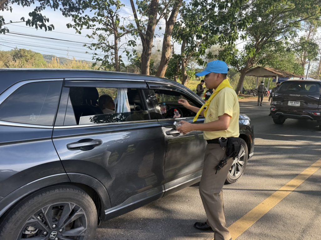 วันนี้ 15 เมษายน 2568 เวลา 15.00 น.โดยการอำนวยการของ พ.ต.อ.ชวลิต จินดารัตน์ ผกก.สภ.บ้านเสด็จ ,พ.ต.ท. พงษ์ศิลป์ ธนะภาษี รอง ผกก.ป.ฯ, พ.ต.ท.กำจร ใจจันทร์ สว.สส.ฯ มอบหมายให้ ร.ต.ท.วิรัช วงค์บุตร รอง สว.(ป.)ฯ หัวหน้าชุด พร้อมกำลัง 10 นาย ร่วม ว.4 ว.43 ตั้งด่านกวดวินัยจราจร และ คณะชุดจิตอาสา สภ.บ้านเสด็จร่วมแจกน้ำดื่มให้ประชาชนที่เดินทางร่วมกับเจ้าหน้าที่ อสม. กำนัน ผู้ใหญ่เเละผู้นำชุมชน ณ จุดตรวจหน้าสภ.บ้านเสด็จ