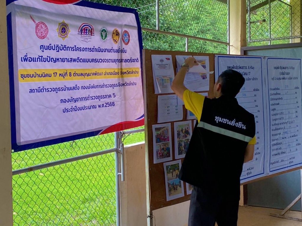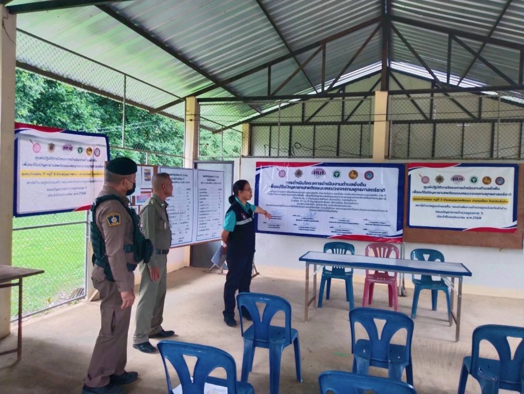 วันที่ 6 ส.ค.2568 เวลา 16.00 น. ภายใต้การอำนวยของ พ.ต.อ.ชวลิต จินดารัตน์ ผกก.สภ.บ้านเสด็จ มอบหมายให้ พ.ต.ท.กำจร ใจจันทร์ สวป.ฯ พร้อมชุดปฏิบัติการชุมชนยั่งยืน สภ.บ้านเสด็จ ต้อนรับการตรวจเยี่ยม จาก พ.ต.ท.หญิง ชนัดดา บุญฤทธิ์ รอง ผกก.ฝอ.ภ.จว.ลำปาง พร้อมด้วยคณะตรวจงานตำบลยั่งยืนเพื่อแก้ปัญหายาเสพติดแบบครบวงจรตามยุทธศาสตร์ชาติ ณ ศูนย์ปฏิบัติการตำบลยั่งยืนบ้านแลง หมู่ที่ 2 ต.บุญนาคพัฒนา อ.เมือง จ.ลำปาง