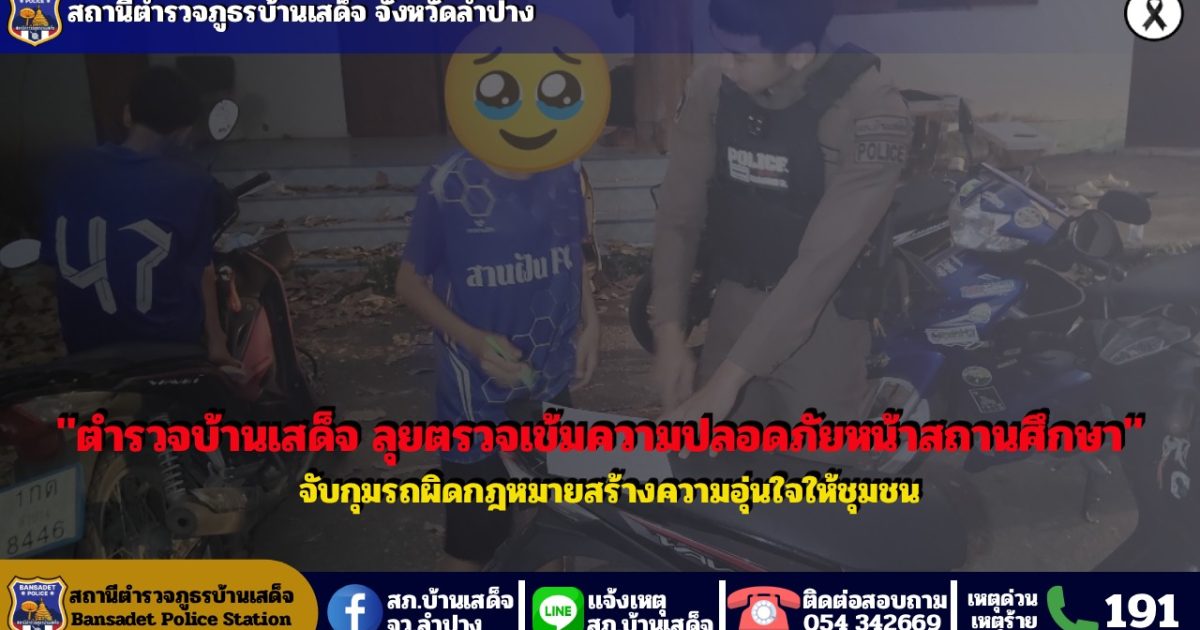 เมื่อวันที่ 3 มีนาคม 2569 เวลา 18.30 น. ที่ผ่านมาโดยการอำนวยการสั่งการของ พ.ต.อ.ชวลิต จินดารัตน์ ผกก.สภ.บ้านเสด็จ , พ.ต.ท.พงษ์ศิลป์ ธนะภาษี รอง ผกก.ป.ฯ , ว่าที่ พ.ต.ต.นพ พึ่งศรี สวป.ฯ มอบหมายให้ ด.ต.ชาติ บุญสมปาน ผบ.หมู่ (ป.)ฯ รักษาการร้อยเวร 20 พร้อมสายตรวจ 201 ว.4 ดำเนินการตามมาตรการระดมกวาดล้างจับกุมรถที่ผิดกฎหมาย มีการเปลี่ยนแปลงสภาพรถ และกวดขันวินัยจราจรแก่ผู้ขับขี่ที่ไม่ปฏิบัติตามกฎหมาย ณ บริเวณโรงเรียนบ้านทรายทอง ม.3 ต.บ้านเสด็จ อ.เมืองลำปาง จ.ลำปาง ผลการปฏิบัติได้ตรวจยึดรถผิดกฎหมาย ไม่ติดแผ่นป้ายทะเบียนจำนวน 1 คัน และได้นำส่งพนักงานสอบสวน สภ.บ้านเสด็จ ดำเนินการในส่วนที่เกี่ยวข้องต่อไป