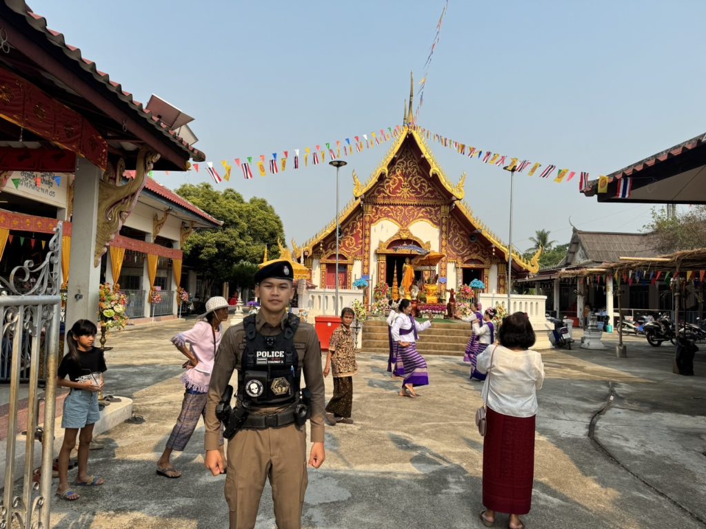 โดยการสั่งการของ พ.ต.อ.ชวลิต จินดารัตน์ผกก.สภ.บ้านเสด็จ , พ.ต.ท. พงษ์ศิลป์ ธนะภาษี รองผกก.ป.ฯ, พ.ต.ท.โสกิจ วรวงศ์ สวป.ฯ สั่งการให้ ร้อยเวร 20 พร้อมสายตรวจ 201 ว.4 ดูแลความสงบเรียบร้อยงานประจำปีประเพณีสรงน้ำพระพุทธรูปพระคันธารราฐ (พระขอฝน) สรงน้ำพระธาตุเจดีย์ รำวงย้อนยุค ณ วัดกู่เกวียน ต.บ้านเสด็จ