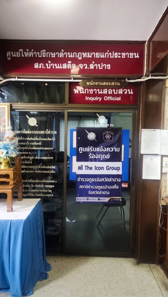 เมื่อวันที่ 19 ต.ค.67 ตามสั่งการ ผบ.ตร. ให้ตั้งศูนย์รับแจ้งความร้องทุกข์ในคดี THE ICON GROUP สภ.บ้านเสด็จ ได้ดำเนินการจัดตั้งศูนย์รับแจ้งความร้องทุกข์ “ คดี The icon Group ” และจัดเจ้าหน้าที่ประจำเพื่ออำนวยความยุติธรรมให้ประชาชน