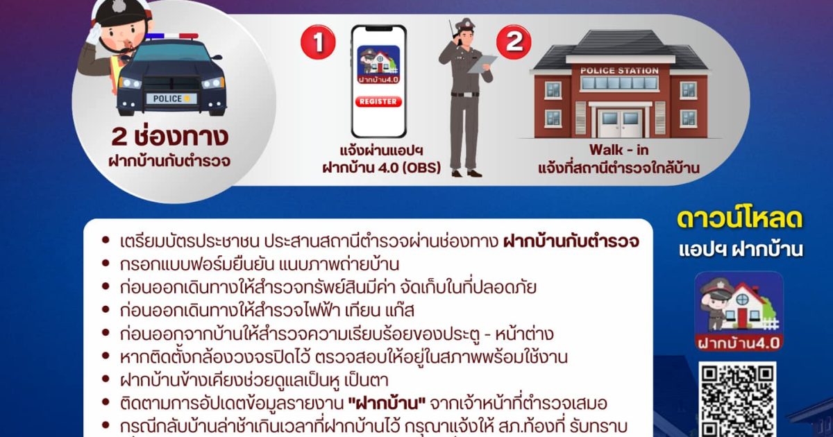 รับฝากบ้านกับตำรวจ ในโครงการร่วมใจดูแลความปลอดภัยบ้านประชาชนช่วงเทศกาลสำคัญ (ฝากบ้าน 4.0 ) เริ่ม 21 ธ.ค.67 – 2 ม.ค.68