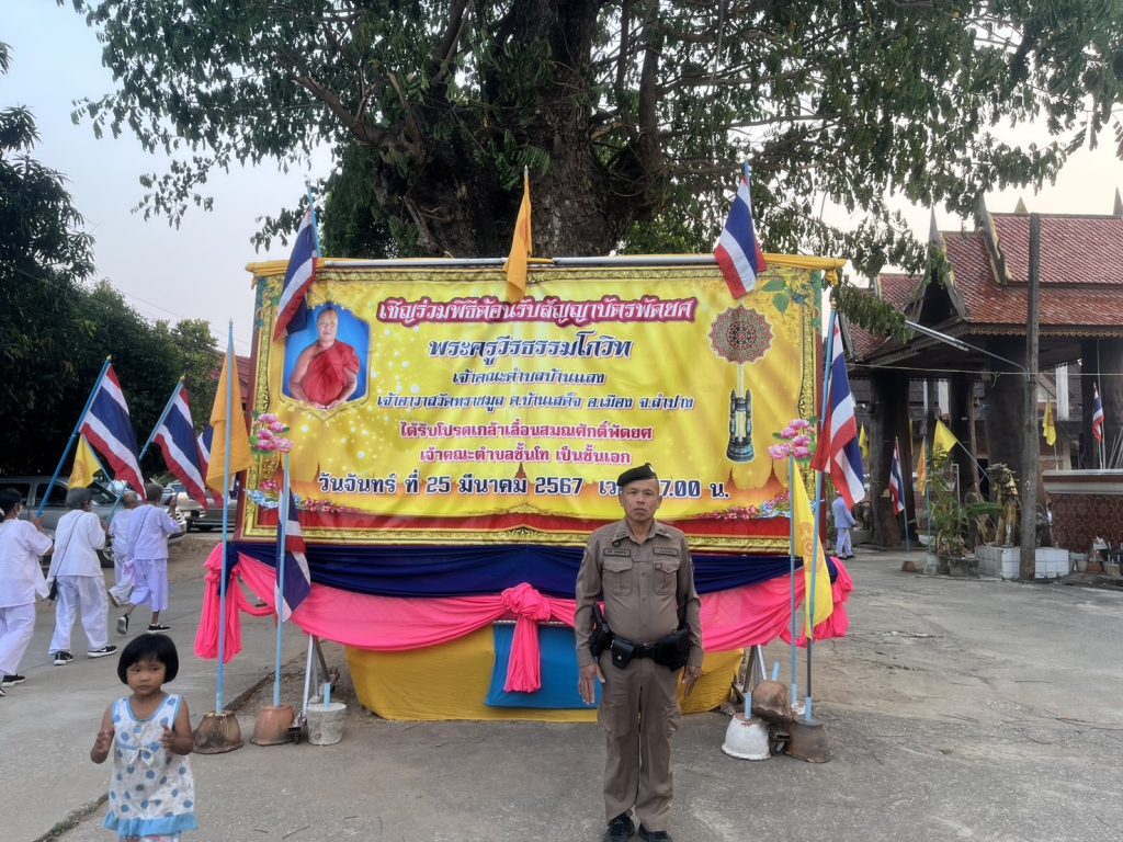 วันนี้ 25 มีนาคม 2567 เวลา 17.30 น. โดยการสั่งการของพ.ต.อ.ชวลิต จินดารัตน์ผกก.สภ.บ้านเสด็จ , พ.ต.ท. พงษ์ศิลป์ ธนะภาษี รองผกก.ป.ฯ, พ.ต.ท.โสกิจ วรวงศ์ สวป.ฯ สั่งการให้ ร้อยเวร 20 พร้อมสายตรวจ 201 ว.4 นำขบวนงานพิธีต้อนรับสัญบัตรพัดยศไป ณ วัดทรายมูล ม.13 ต.บ้านเสด็จ อ.เมือง จ.ลำปาง