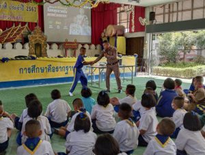 เมื่อวันที่ 15 ก.พ.67 เวลา 13.30 น. นำโดย พ.ต.อ.ชวลิต จินดารัตน์ ผกก.สภ.บ้านเสด็จ,พ.ต.ท.โสกิจ วรวงศ์ สวป.สภ.บ้านเสด็จ ,เจ้าหน้าที่สายตรวจ และเจ้าหน้าที่ ชมส. สภ.บ้านเสด็จ บรรยายให้ความรู้การเอาตัวรอดจากสถานการณ์ต่างๆ ตามโครงการ หนี-ซ่อน-สู้ และซักซ้อมแผนเผชิญเหตุคนร้ายกราดยิง (Active Shooter) คนร้ายคลุ้มคลั่ง ให้กับคณะครูและนักเรียนโรงเรียนวัดเสด็จ ต.บ้านเสด็จ อ.เมืองลำปาง จ.ลำปาง