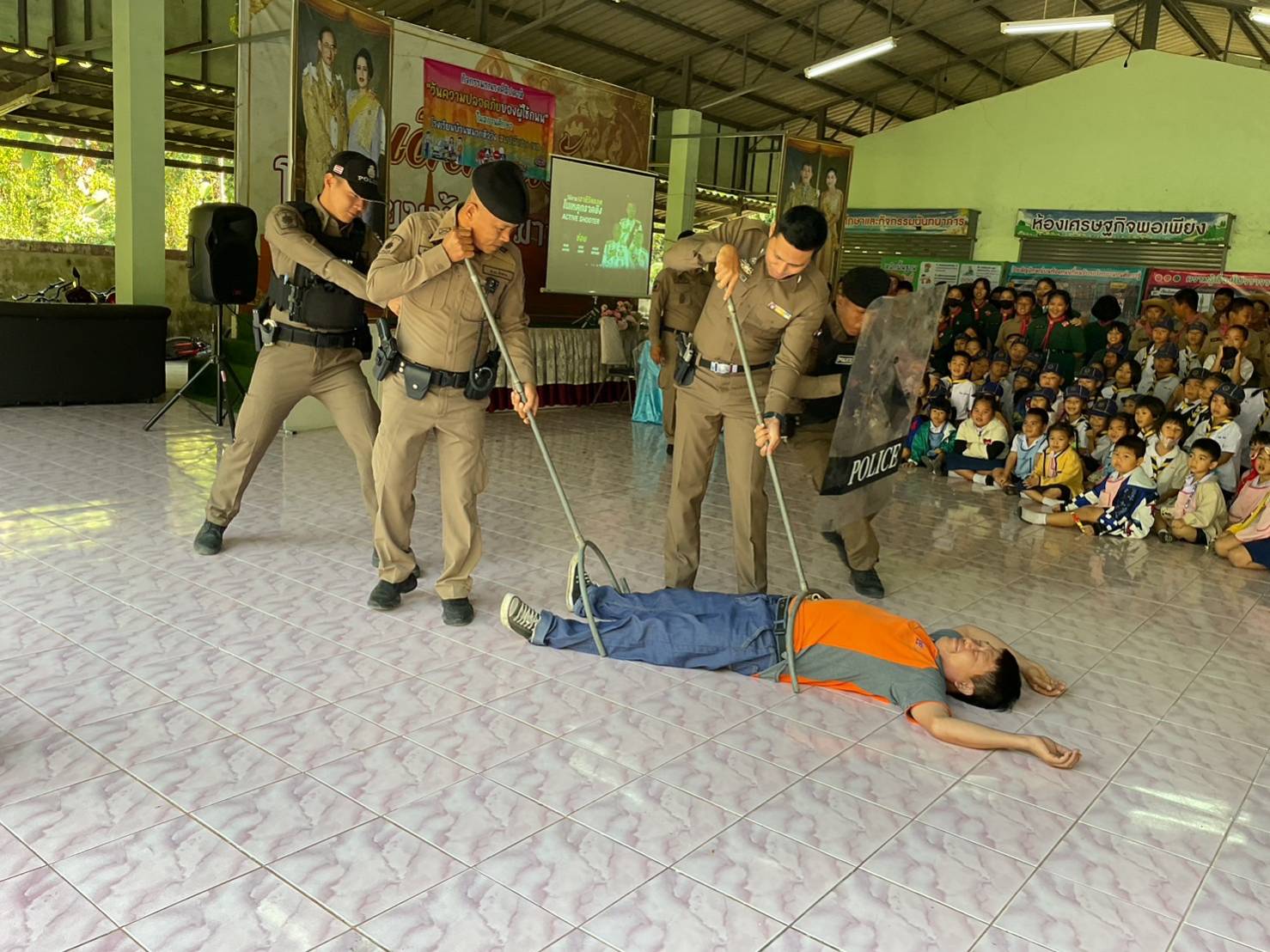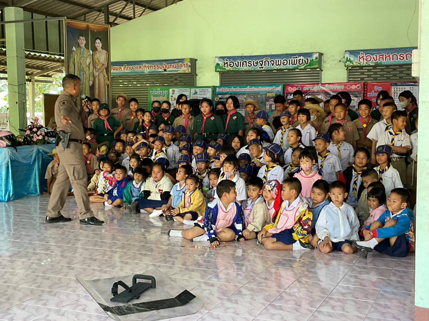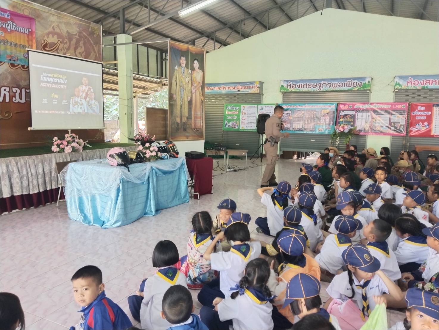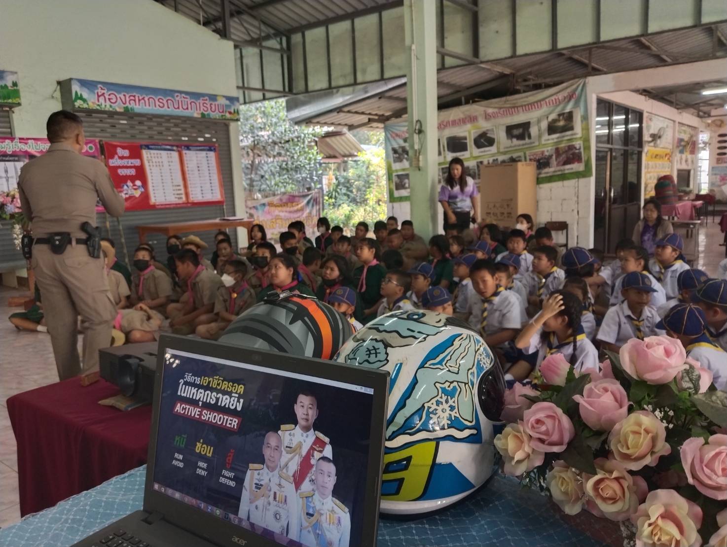 วันที่ 25 ม.ค.67 เวลา 09.00 น.โดยการอำนวยการของ พ.ต.อ.ชวลิต จินดารัตน์ ผกก.สภ.บ้านเสด็จ, พ.ต.ท.พงษ์ศิลป์ ธนะภาษี รองผกก.ป.สภ.บ้านเสด็จ มอบหมายให้ พ.ต.ท.โสกิจ วรวงศ์ สวป.สภ.บ้านเสด็จ ,เจ้าหน้าที่สายตรวจ และเจ้าหน้าที่จราจร สภ.บ้านเสด็จ บรรยายให้ความรู้ การใช้รถ ถนน และกฎจราจร ตามโครงการขับขี่ปลอดภัย 100% 365 วัน และให้ความรู้การเอาตัวรอดจากสถานการณ์ต่างๆ ตามโครงการ หนี-ซ่อน-สู้ และซักซ้อมแผนเผชิญเหตุคนร้ายกราดยิง (Active Shooter) คนร้ายคลุ้มคลั่ง ให้กับคณะครูและนักเรียนโรงเรียนบ้านหมากหัววัง ต.บุญนาคพัฒนา อ.เมืองลำปาง จ.ลำปาง