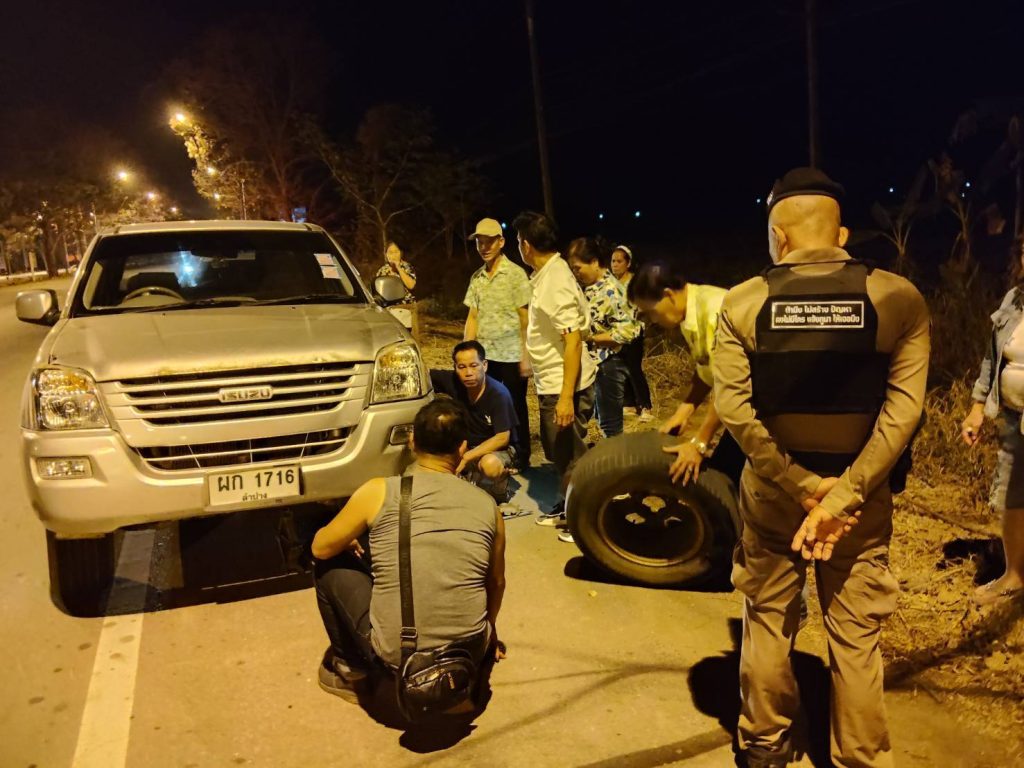 วันที่ 18 กุมภาพันธ์ 2569 เวลา 19.10 น.ได้รับแจ้งทางศูนย์วิทยุสภ.บ้านเสด็จ ว่ามีประชาชนขอความช่วยเหลือรถยนต์ยางแตก ที่ถนนสายลำปาง – งาว เขตพื้นที่บ้านทรายทอง ม.3 ต.บ้านเสด็จ อ.เมืองลำปาง จ.ลำปาง ด.ต.ชาติ บุญสมปาน ผบ.หมู่ (ป.)ฯ รักษาการร้อยเวร 20 พร้อมสายตรวจ 201 ว.4 ที่เกิดเหตุ ได้ช่วยเหลือประชาชนเปลี่ยนยางอะไหล่เป็นที่เรียบร้อย