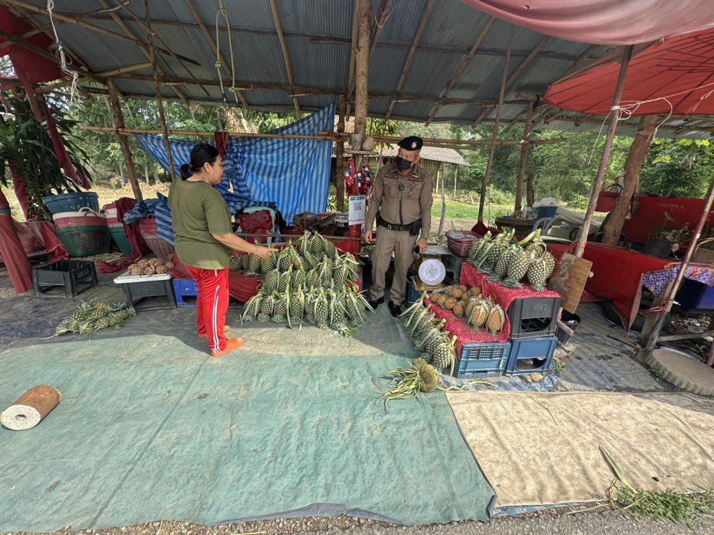วันที่ 18 พฤษภาคม 2567 เวลา 09.30 น. ร้อยเวร 20 พร้อมสายตรวจ 201 ว.4 ประชาสัมพันธ์การป้องกันเหตุลักทรัพย์(ในฤดูกาลสับปะรด) เพื่อป้องกันเหตุลักทรัพย์ในพื้นที่รับผิดชอบ ที่ร้านสับปะรด