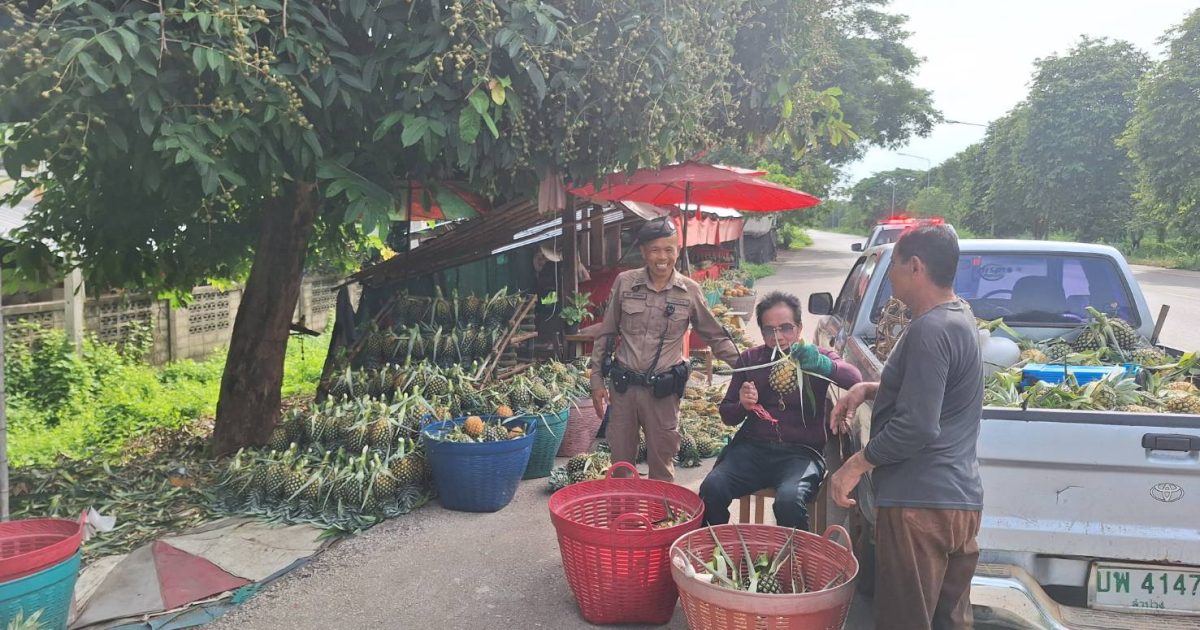 วันที่ 7 กรกฎาคม 2567 เวลา 09.00 น. ด.ต.ชาติ บุญสมปาน ผบ.หมู่(ป.) สภ.บ้านเสด็จ รักษาร้อยเวร 20 พร้อมสายตรวจ 201 ว.4 ประชาสัมพันธ์การป้องกันเหตุลักทรัพย์(ในฤดูกาลสับปะรด) เพื่อป้องกันเหตุลักทรัพย์ในพื้นที่รับผิดชอบ ที่ร้านสับปะรด ม.6 บ้านห้วยยาง ต.บ้านเสด็จ