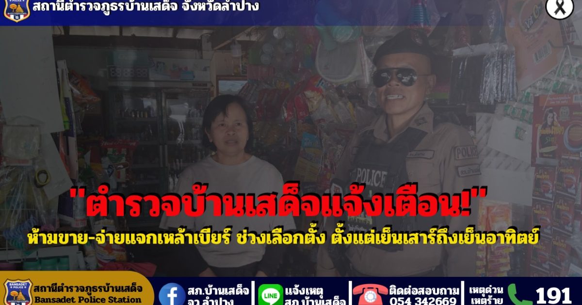 สั่งการให้ ด.ต.ชาติ บุญสมปาน ผบ.หมู่ (ป.)ฯ รักษาการร้อยเวร 20 พร้อมสายตรวจ 201 ว.4 ประชาสัมพันธ์ ห้ามขาย ห้ามจำหน่าย จ่ายแจกเครื่องดื่มแอลกอฮอล์ ในเขตพื้นที่รับผิดชอบ เวลา 18.00 น.ของวันที่ 7 ก.พ.69 ถึงเวลา 18.00 น.ของวันที่ 8 ก.พ.69 เนื่องในวันเลือกตั้งฯ