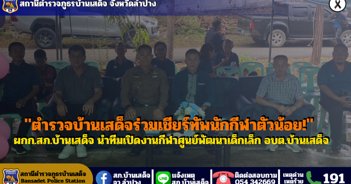 วันที่ 13 มีนาคม 2569 เวลา 08.30 น. พ.ต.อ.ชวลิต จินดารัตน์ ผกก.สภ.บ้านเสด็จ , ว่าที่ พ.ต.ต.นพ พึ่งศรี สวป.ฯ พร้อมด้วยสายตรวจ 20/201 ว.4 ร่วมพิธีเปิดการแข่งขันกีฬาศูนย์พัฒนาเด็กเล็ก ประจำปีงบประมาณ 2569 ณ ลานอเนกประสงค์ อบต.บ้านเสด็จ