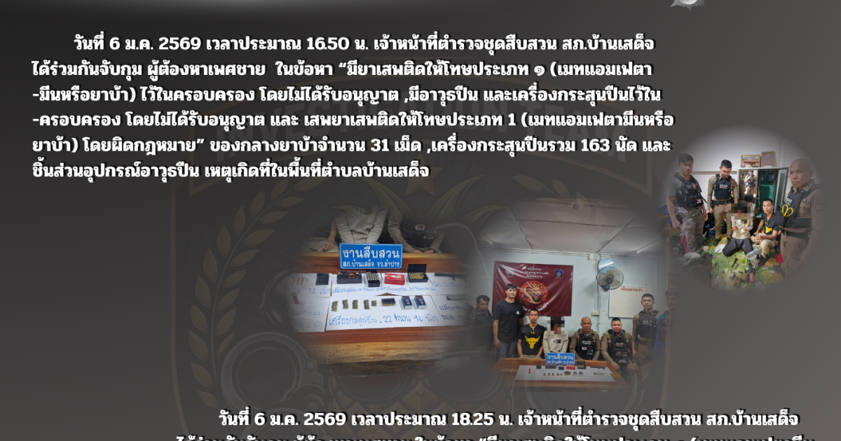 ผลการปฏิบัติงานสืบสวนสอบสวน ประจำเดือน มกราคม 2569