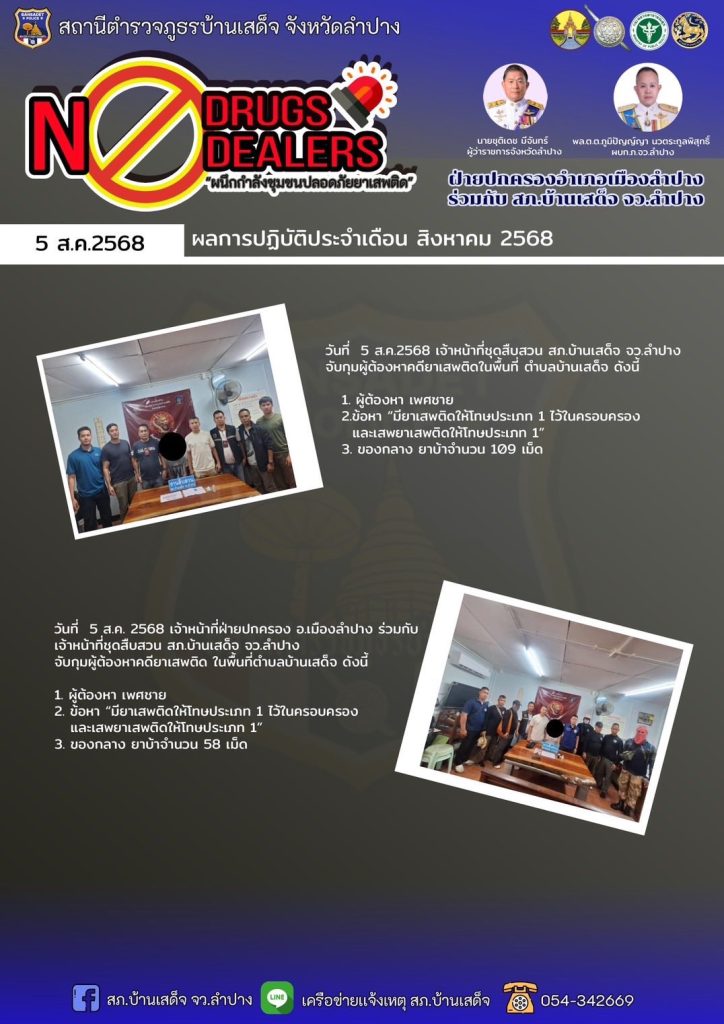 ผลการปฏิบัติ no drugs no dealers ระหว่างวันที่ 5-15 สิงหาคม 2568
