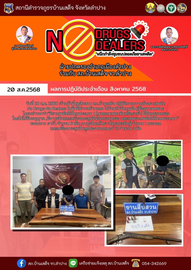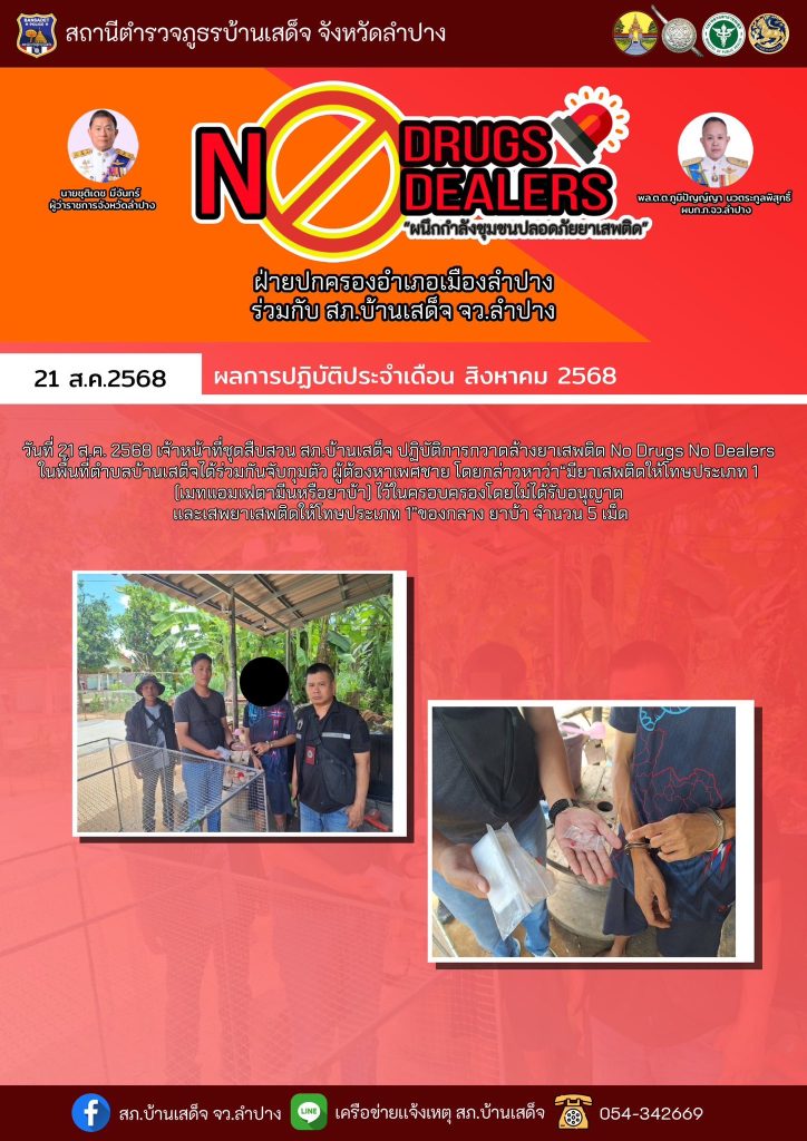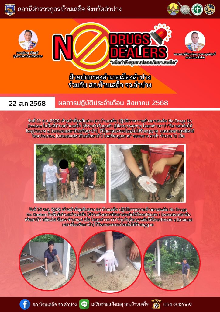 ผลการปฏิบัติ no drugs no dealers ระหว่างวันที่ 19 – 22 สิงหาคม 2568