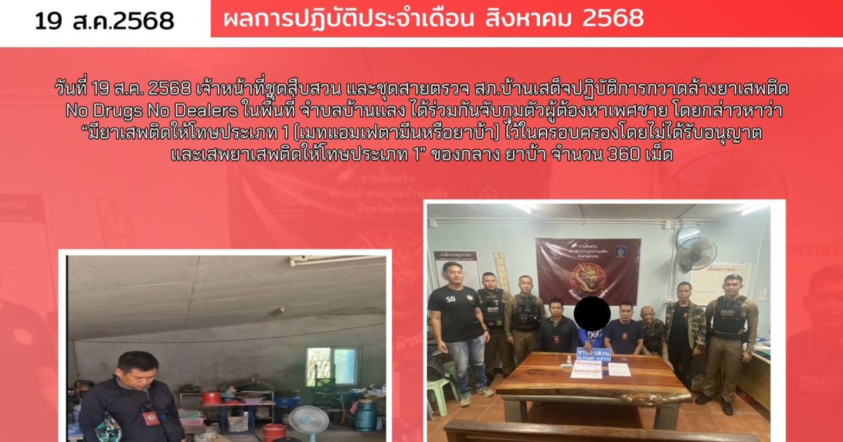 ผลการปฏิบัติ no drugs no dealers ระหว่างวันที่ 19 – 22 สิงหาคม 2568