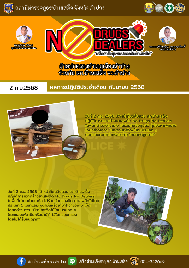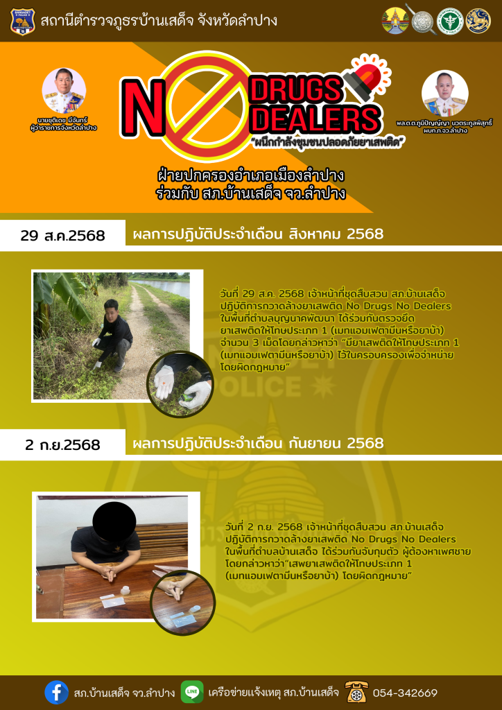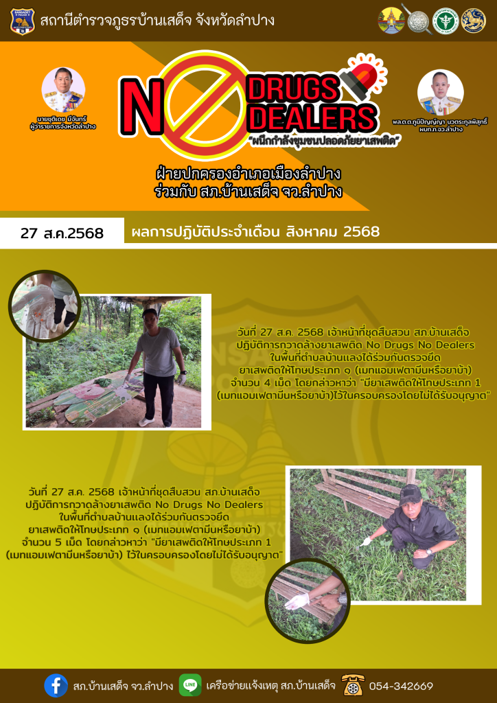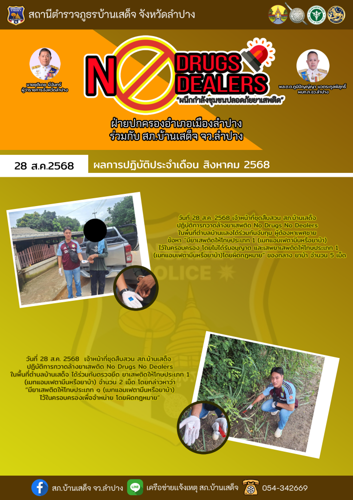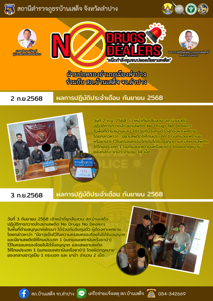 ผลการปฏิบัติ no drugs no dealers ระหว่างวันที่ 26 สิงหาคม – 3 กันยายน 2568