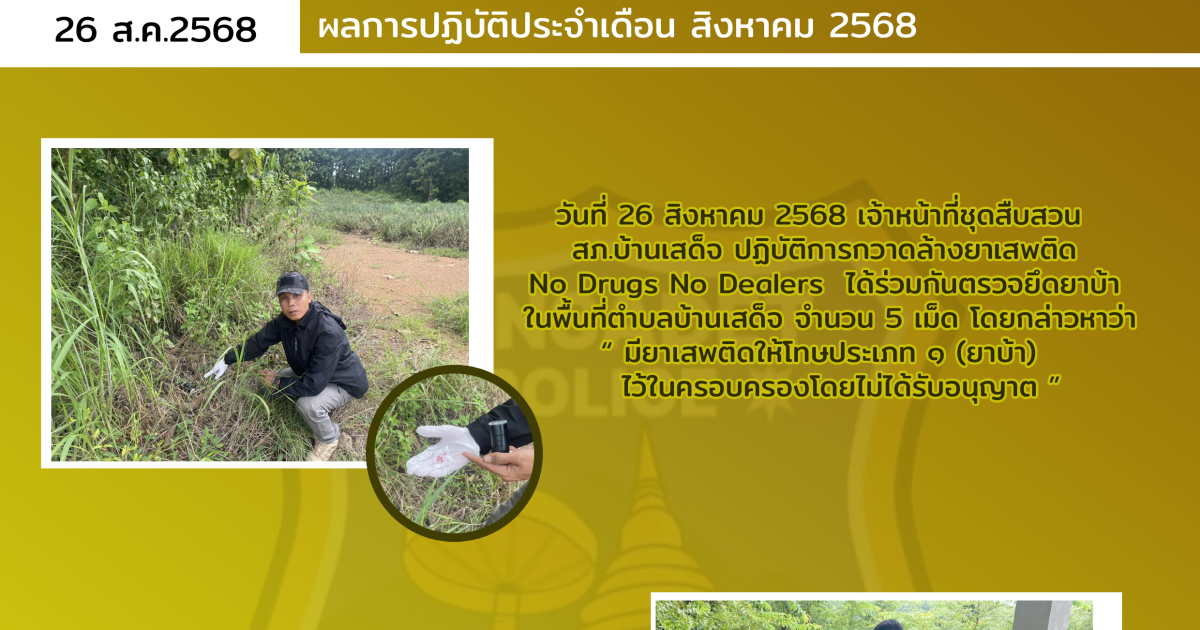 ผลการปฏิบัติ no drugs no dealers ระหว่างวันที่ 26 สิงหาคม – 3 กันยายน 2568