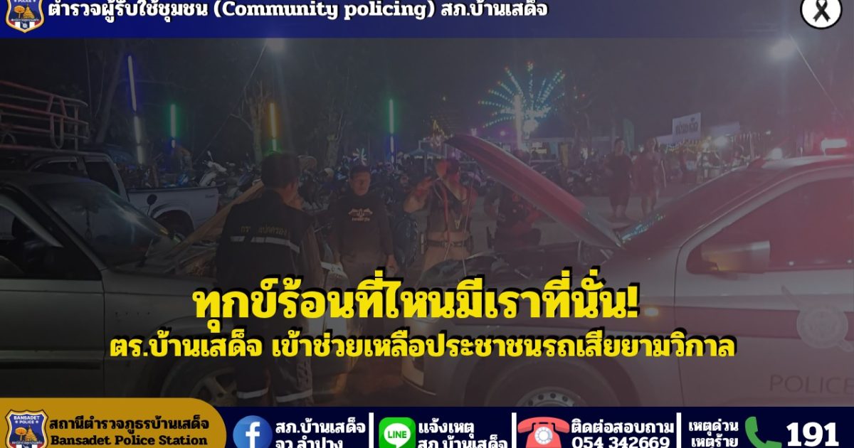 วันที่ 1 กุมภาพันธ์ 2569 เวลา 22.30 น.ขณะออกตรวจในเขตพื้นที่รับผิดชอบ ม.5 บ.เสด็จ พบประชาชนขอความช่วยเหลือรถยนต์แบตหมด ร.ต.ท.วิรัช วงค์บุตร รอง สว.(ป.) สภ.บ้านเสด็จ ร้อยเวร 20 พร้อมสายตรวจ 201 ว.4 เบื้องต้นจึงจะให้ความช่วยเหลือเป็นที่เรียบร้อย