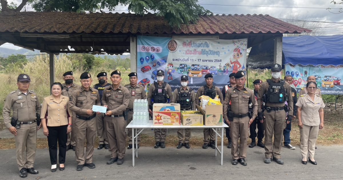 จึงได้มอบสิ่งของเพื่อเป็นขวัญกำลังใจในการปฎิบัติหน้าที่พร้อมทั้งมอบหมวกนิรภัยให้กับประชาชนที่ขับขี่รถยนต์ไม่สวมหมวกนิรภัย ตามโครงการจิตอาสาจราจรในช่วงเทศกาลสงกรานต์ 2568 และกำชับข้าราชการตำรวจดังนี้