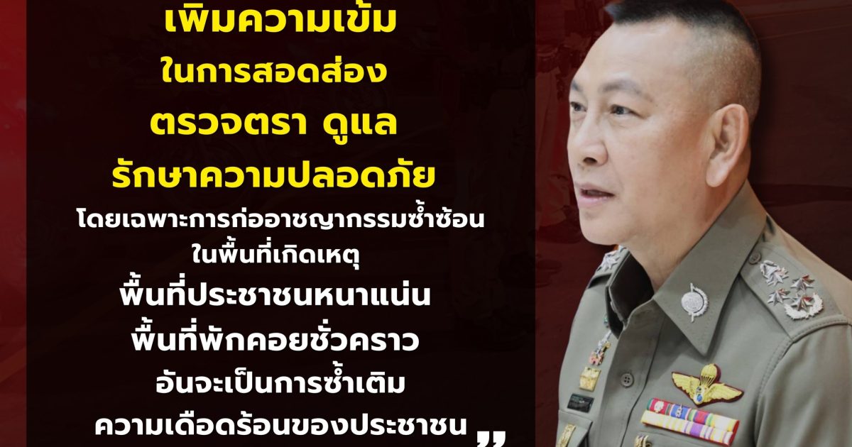 “ให้ร้อยเวร 20 สายตรวจรถยนต์ สายตรวจรถจักรยานยนต์ เพิ่มความเข้มในการสอดส่อง ตรวจตรา ดูแล รักษาความปลอดภัย โดยเฉพาะการก่ออาชญากรรมซ้ำซ้อน ในพื้นที่เกิดเหตุ พื้นที่ประชาชนหนาแน่น พื้นที่พักคอยชั่วคราว อันจะเป็นการซ้ำเติมความเดือดร้อนของประชาชน”