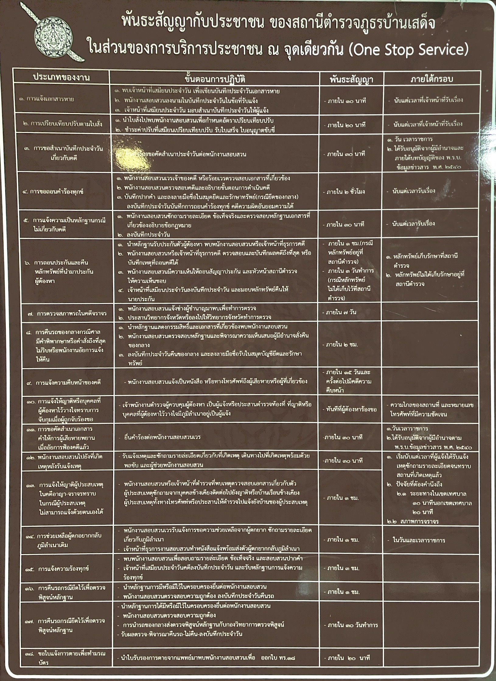 พันธะสัญญากับประชาชน ของ สภ.บ้านเสด็จ