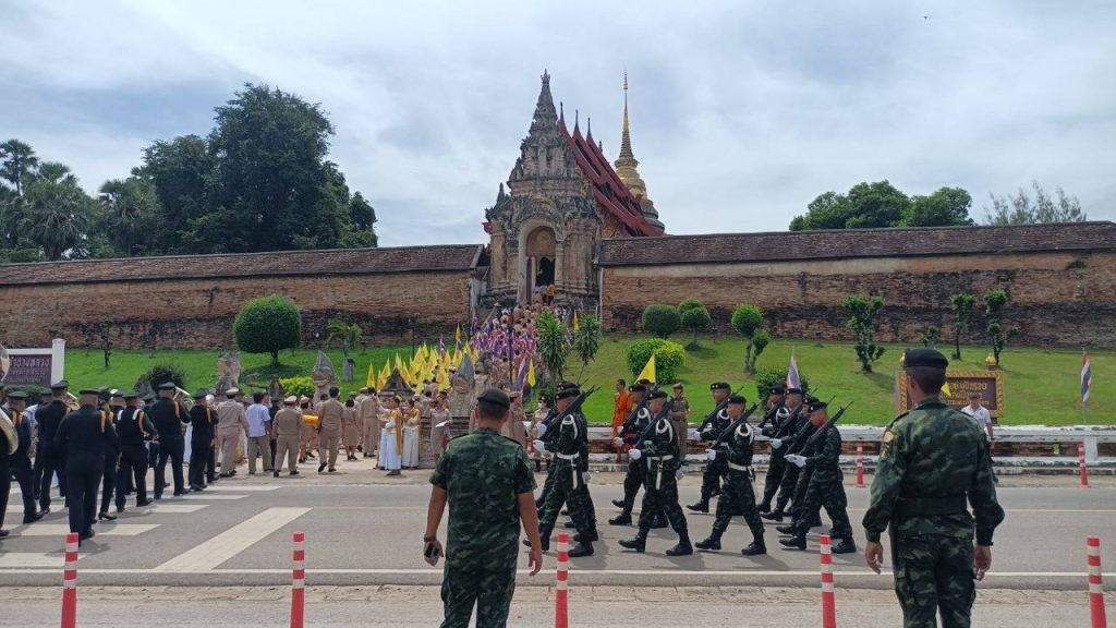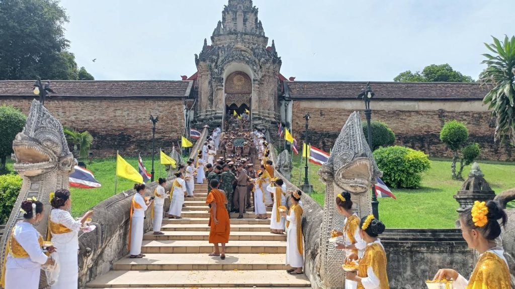 พิธีบวงสรวงเจริญพระพุทธมนต์และสมโภชอัญเชิญ พระบรมรูปสมเด็จพระเจ้าตากสินมหาราช รูปเหมือนพระยากาวิละ รูปเหมือนพระยาพิชัยดาบหัก ขึ้นประดิษฐานบนแท่น ณ ลานอนุสรณ์สถาน วัดพระธาตุลำปางหลวง