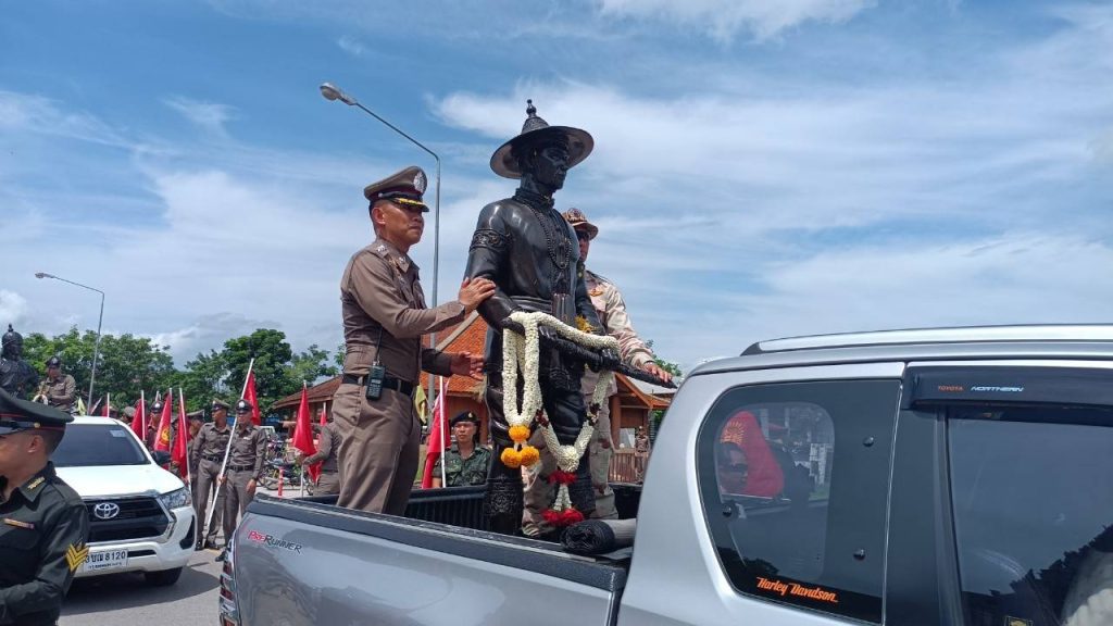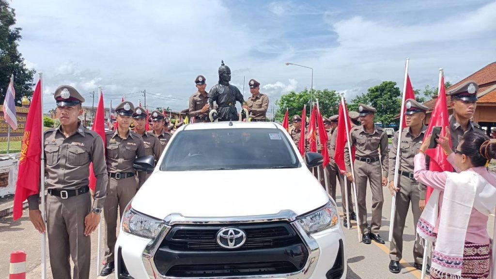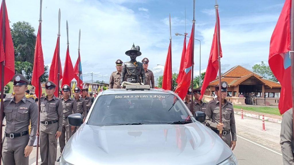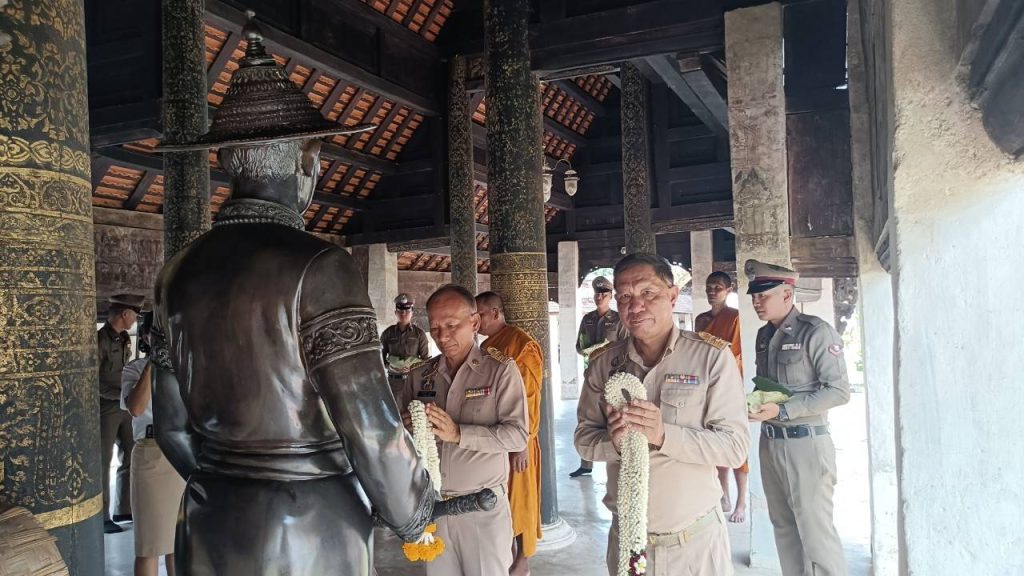 พ.ต.อ.ชวลิต จินดารัตน์ ผกก.สภ.บ้านเสด็จ พร้อมข้าราชการตำรวจ สภ.บ้านเสด็จ 13 นาย เข้าร่วม พิธีบวงสรวงเจริญพระพุทธมนต์และสมโภชอัญเชิญ พระบรมรูปสมเด็จพระเจ้าตากสินมหาราช รูปเหมือนพระยากาวิละ รูปเหมือนพระยาพิชัยดาบหัก ขึ้นประดิษฐานบนแท่น