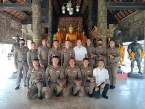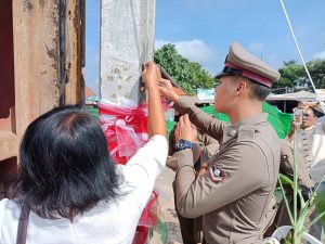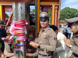 ข้าราชการตำรวจ สภ.บ้านเสด็จร่วม พิธีลงเสามหามงคลเอกโท และเสาเข็มเพื่อสร้างฐานพระบรมรูป สมเด็จพระเจ้าตากสินมหาราช พระยาพิชัยดาบหัก พระยากาวิละ วันที่ 8 พฤศจิกายน 2566 เวลา 09.00 น. ณ วัดพระธาตุลำปางหลวง อ.เกาะคา จ.ลำปาง นายชัชวาลย์ ฉายะบุตร ผู้ว่าราชการจังหวัดลำปาง ได้มอบหมายให้ นายจำลักษ์ กันเพ็ชร์ รองผู้ว่าราชการจังหวัดลำปาง เป็นประธานในพิธี พร้อมด้วย เจ้าคณะจังหวัดลำปาง นายอำเภอเกาะคา นายอำเภอแม่ทะ หัวหน้าส่วนราชการ และประชาชนในพื้นที่ เข้าร่วมพิธีลงเสาเอกสร้างฐานพระบรมรูปสมเด็จพระเจ้าตากสินมหาราช พระยาพิชัยดาบหัก พระยากาวิละ เพื่อให้ประชาชนได้มากราบไหว้สักการะเพื่อเป็นสิริมงคล