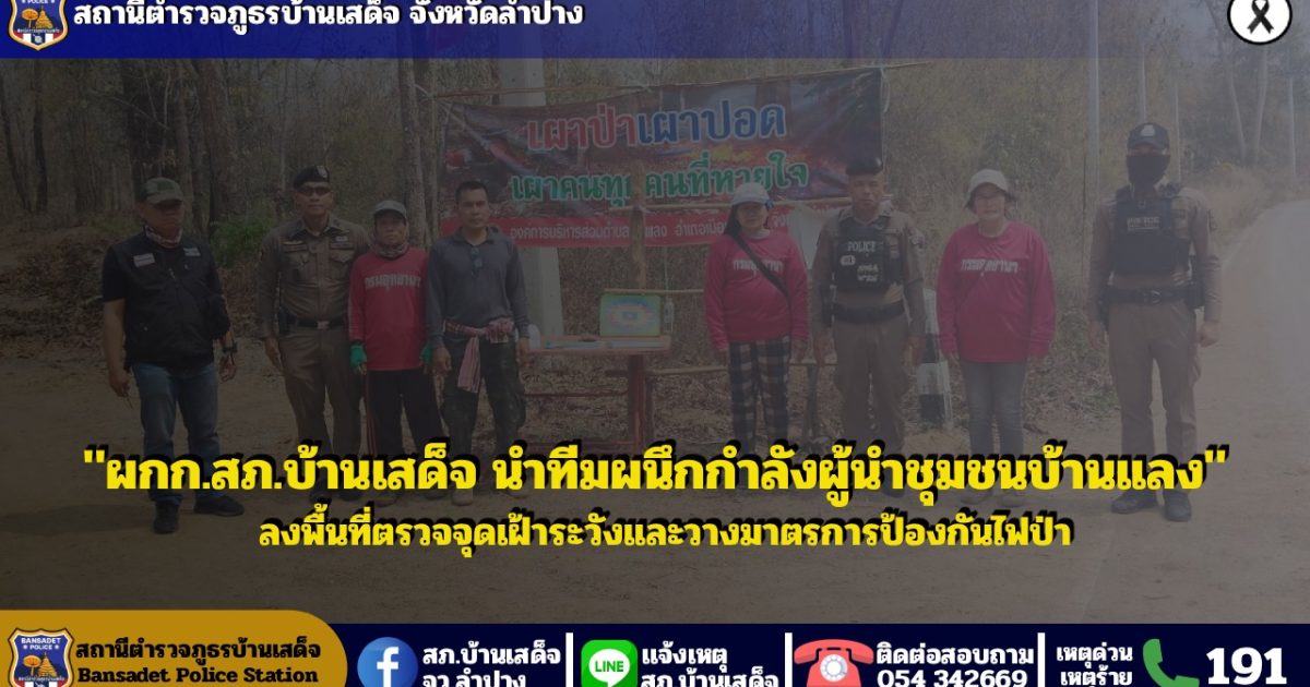 วันที่ 6 มีนาคม 2569 เวลา 11.00 น. พ.ต.อ.ชวลิต จินดารัตน์ ผกก.สภ.บ้านเสด็จ พร้อมสายตรวจ 20/201 , ชุดสืบสวนฯ , กำนันตำบลบ้านแลง , ผู้ใหญ่บ้าน ม.5 ต.บ้านแลงฯ ว.4 พูดคุยปรึกษาเรื่องการป้องกันไฟป่า และออกตรวจจุดเฝ้าระวังป้องกันไฟป่า หมู่ 5 บ้านดง ต.บ้านแลง อ.เมืองลำปาง จ.ลำปาง