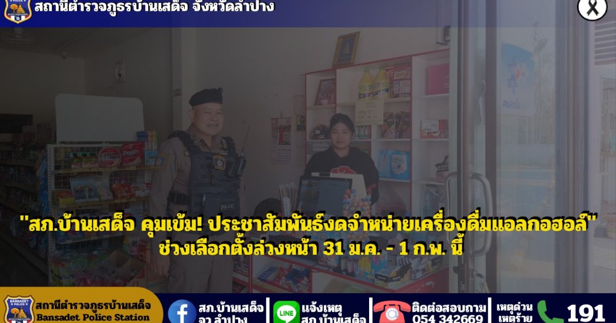สั่งการให้ ร.ต.ท.วิรัช วงค์บุตร รอง สว.(ป.) สภ.บ้านเสด็จ ร้อยเวร 20 พร้อมสายตรวจ 201 ว.4 ประชาสัมพันธ์ ห้ามขาย ห้ามจำหน่าย จ่ายแจกเครื่องดื่มแอลกอฮอล์ ในเขตพื้นที่รับผิดชอบ เวลา 18.00 น.ของวันทึ่ 31 ม.ค.69 ถึงเวลา 18.00 น.ของวันที่ 1 ก.พ.69 เนื่องในวันเลือกตั้งล่วงหน้า