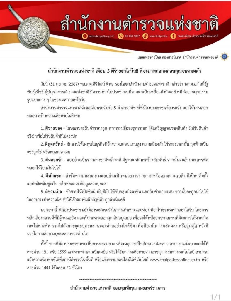 ระวัง!!!! 5 ผีร้ายมิจจี้ “ฮาโลวีน” อย่ายอมให้หลอน ไม่เชื่อไม่รีบไม่โอน ไม่หลงกล