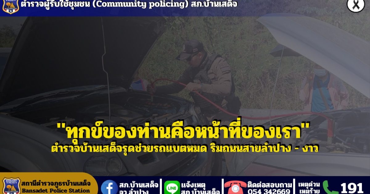 วันที่ 1 กุมภาพันธ์ 2569 เวลา 11.10 น.ได้รับแจ้งเหตุจากศูนย์วิทยุสภ.บ้านเสด็จ ว่ามีเหตุ รถยนต์แบตหมดสตาร์ทไม่ติดบริเวณถนนเส้นลำปาง – งาว (หลักกิโลเมตรที่733-734 ขาขึ้น) ม.15 บ.ห้วยหลวง ต.บัานเสด็จ