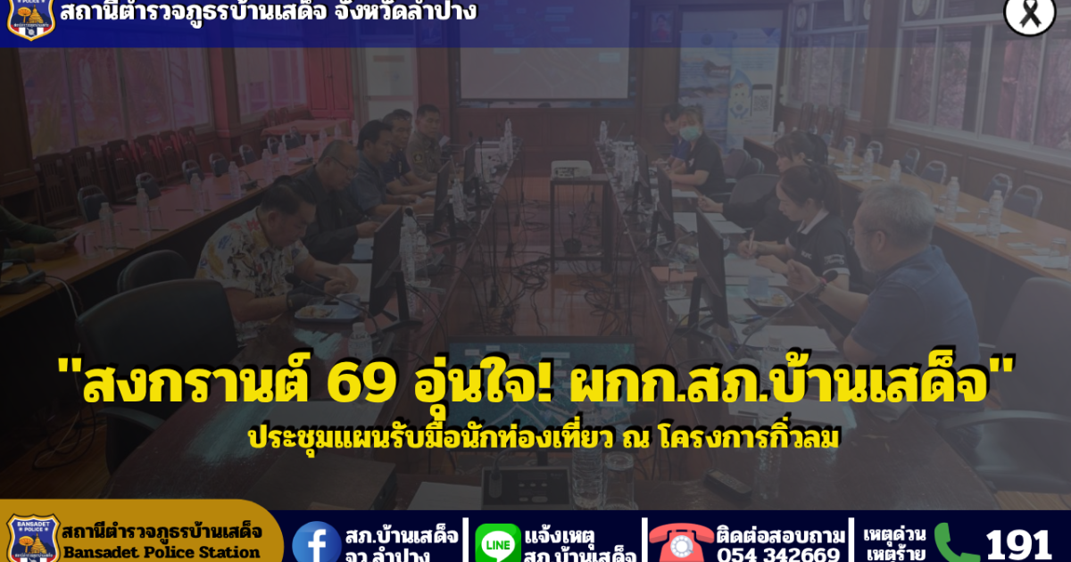 วันที่ 8 เมษายน 2569 เวลา 10.00 น. พ.ต.อ.ชวลิต จินดารัตน์ ผกก.สภ.บ้านเสด็จ เข้าร่วมการประชุมเพื่อเตรียมความพร้อมในการดูเเลนักท่องเที่ยวในช่วงเทศกาลสงกรานต์ปี 2569 ณ ห้องประชุมโครงการส่งน้ำและบำรุงรักษากิ่วลม – กิ่วคอหมา