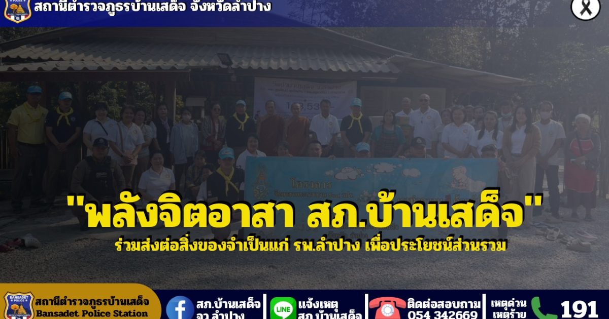 วันนี้ 30 มกราคม 2569 เวลา 10.00 น นำโดย พ.ต.อ.ชวลิต จินดารัตน์ ผกก.สภ.บ้านเสด็จ พร้อมคณะจิตอาสา สภ.บ้านเสด็จ ร่วมกิจกรรมจิตอาสาบริจาคของช่วยเหลือโรงพยาบาลลำปาง พร้อมคณะศรัทธาวัดป่าบ้านเสด็จ ณ วัดป่าบ้านเสด็จ