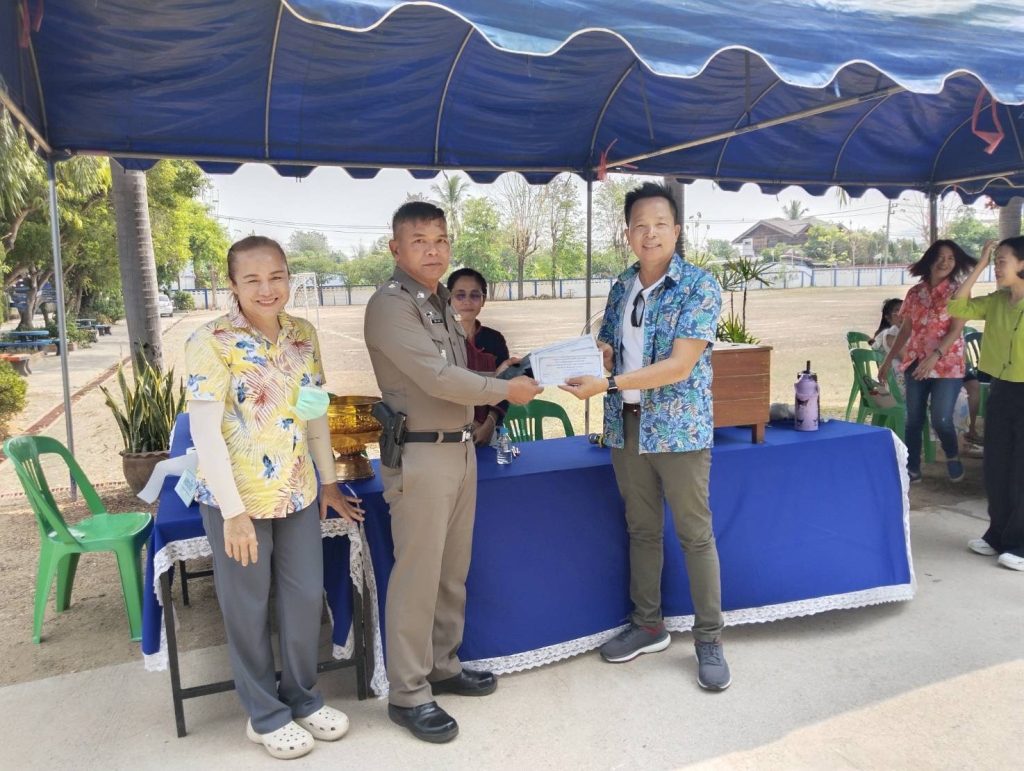 วันนี้ 12 เมษายน 2567 เวลา 14.00 น.โดยการอำนวยการของ พ.ต.อ.ชวลิต จินดารัตน์ผกก.สภ.บ้านเสด็จ , พ.ต.ท. พงษ์ศิลป์ ธนะภาษี รองผกก.ป.ฯ มอบหมายให้ พ.ต.ท.โสกิจ วรวงศ์ สวป.ฯ ร้อยเวร 20 พร้อมสายตรวจ 201 ว.4 ร่วมงานทำบุญ ทอดผ้าป่าสามัคคีโรงเรียนวัดเสด็จเพื่อหารายได้สมทบทุนพัฒนาโรงเรียนวัดเสด็จ และบริจาคน้ำจำนวน 10 แพ็ค และมอบซองผ้าป่า