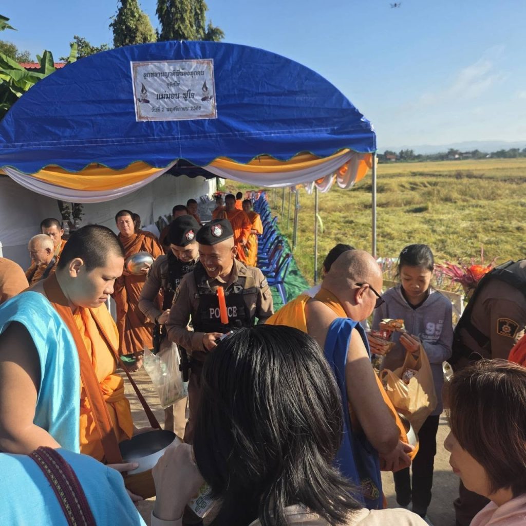 วันที่ 23 พฤศจิกายน 2568 เวลา 07.00 น. นำโดย พ.ต.อ.ชวลิต จินดารัตน์ ผกก.สภ.บ้านเสด็จ , ร.ต.ท.วิรัช วงค์บุตร รอง สว.(ป.) สภ.บ้านเสด็จ ร้อยเวร 20 พร้อมสายตรวจ 201 ว.4 ร่วมทำบุญและอำนวยความสะดวกการจราจร งานประเพณีตักบาตรฮอมบุญ(ครั้งที่4) ณ ถนนเชื่อมต่อระหว่างบ้านร่องหอยกับบ้านปงอ้อม