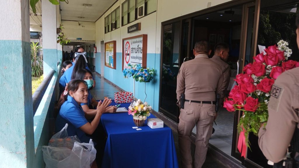 วันนี้ 9 ตุลาคม 67 เวลา 09.00 น. นำโดย พ.ต.อ.ชวลิต จินดารัตน์ ผกก.สภ.บ้านเสด็จ ,พ.ต.ท.โสกิจ วรวงศ์ สวป.ฯ,ร.ต.ท.วิรัช วงค์บุตร รอง สว.(ป.) ร้อยเวร 20 พร้อมสายตรวจ 201 ร่วมพิธีต้อนรับนาย เสกสรรค์ พิทักษ์ทา ผู้อำนวยการโรงเรียนเสด็จวนชยางค์กูลวิทยา จังหวัดลำปาง