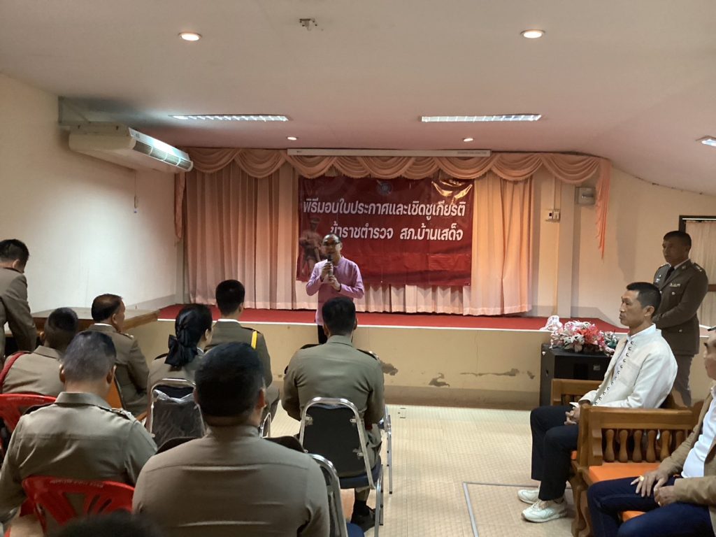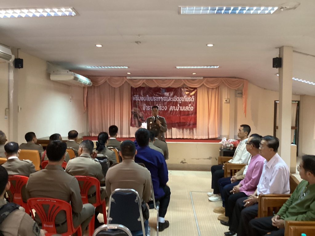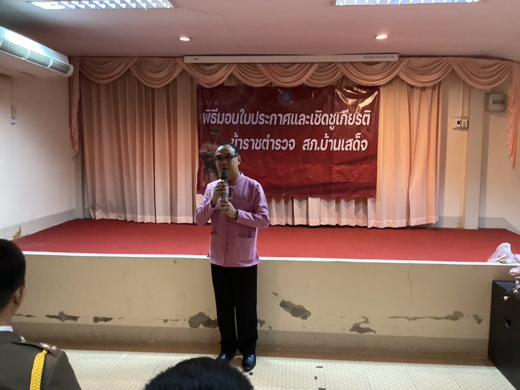 นำโดย พ.ต.อ.ชวลิต จินดารัตน ผกก.สภ.บ้านเสด็จ ,พ.ต.ท.บรรจง เรืองสุข รอง ผกก.(สอบสวน) , พ.ต.ท.พงษ์ศิลป์ ธนะภาษี รอง.ผกก.ป. พร้อมข้าราชการตำรวจ สภ.บ้านเสด็จ ร่วมเคารพธงชาติ พิธีสักการะสิ่งศักดิ์สิทธิประจำ สภ. ทำบุญเนื่องในวันสถาปนาตำรวจแห่ง และะพีธีมอบทุนการศึกษาแก่บุตรธิดาตำรวจ มอบประกาศเชิดชูข้าราชการตำรวจที่ประพฤติปฏิบัติดีเยี่ยมฯ โดยมี นายประสิทธิ์ เตชะปลูก ประธานคณะกรรมการ กต.ตร พร้อมทั้งคณะกรรมการ กต.ตร สภ.บ้านเสด็จเข้าร่วม