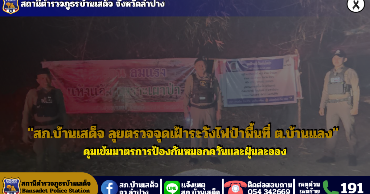 วันที่ 3 เมษายน 2569 ภายใต้การอำนวยการของ พ.ต.อ.ชวลิต จินดารัตน์ ผกก.สภ.บ้านเสด็จ , พ.ต.ท.พงษ์ศิลป์ ธนะภาษี รอง ผกก.ป.ฯ, พ.ต.ต.นพ พึ่งศรี สวป.ฯ สั่งการให้ ร.ต.ท.วิรัช วงค์บุตร รอง สว.(ป.) ร้อยเวรฯ 20 พร้อมสายตรวจ 201 ออกตรวจ จุดเฝ้าระวังป้องกันไฟป่า ในพื้นที่รับผิดชอบ