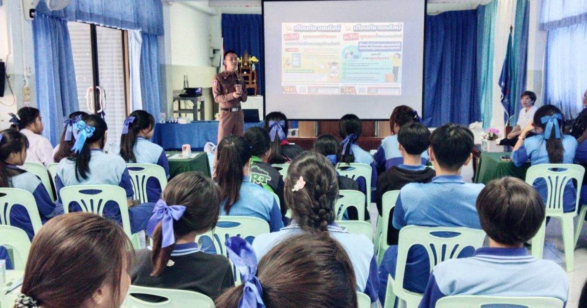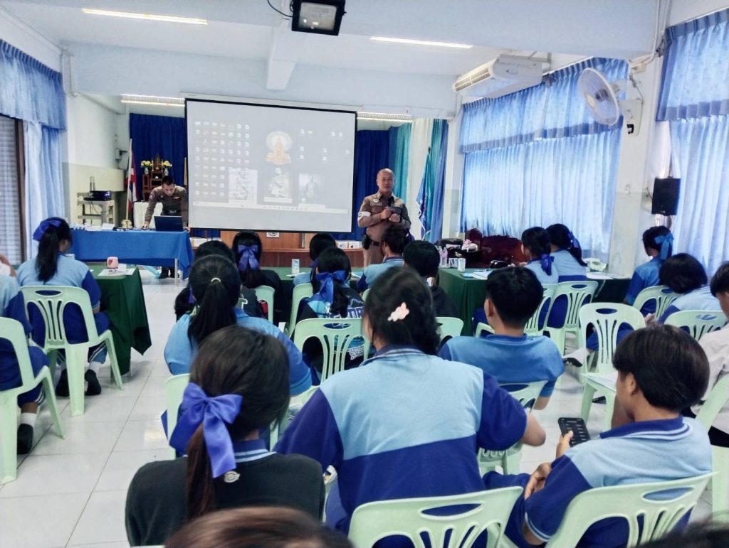 วันที่ 23 พฤษภาคม 2568 เวลา 13.00 น.ที่ผ่านมา โดยการอำนวยการของ พ.ต.อ.ชวลิต จินดารัตน์ ผกก.สภ.บ้านเสด็จ , พ.ต.ท. พงษ์ศิลป์ ธนะภาษี รองผกก.ป.ฯ พ.ต.ท.บรรจง เรืองสุข รอง ผกก.(สอบสวน)ฯ,พ.ต.ท.กำจร ใจจันทร์ สวป.สภ.บ้านเสด็จ มอบหมายให้ พ.ต.ต.พงศกร อินทร์หอม สว.(สอบสวน)ฯ ,ร.ต.อ.พิชิตชัย ไชยาโส รอง สวป.ฯ ร้อยเวร 20 ,ด.ต.อากาศ ทองแสน ผบ.หมู่(ป.)ฯ พร้อมสายตรวจ 201 ว.4 วิทยากรให้ความรู้ เรื่อง รู้เท่าทัน ภัยอันตรายจากสื่อออนไลน์ ณ โรงเรียนเสด็จวนชยางค์กูลวิทยา จังหวัดลำปาง
