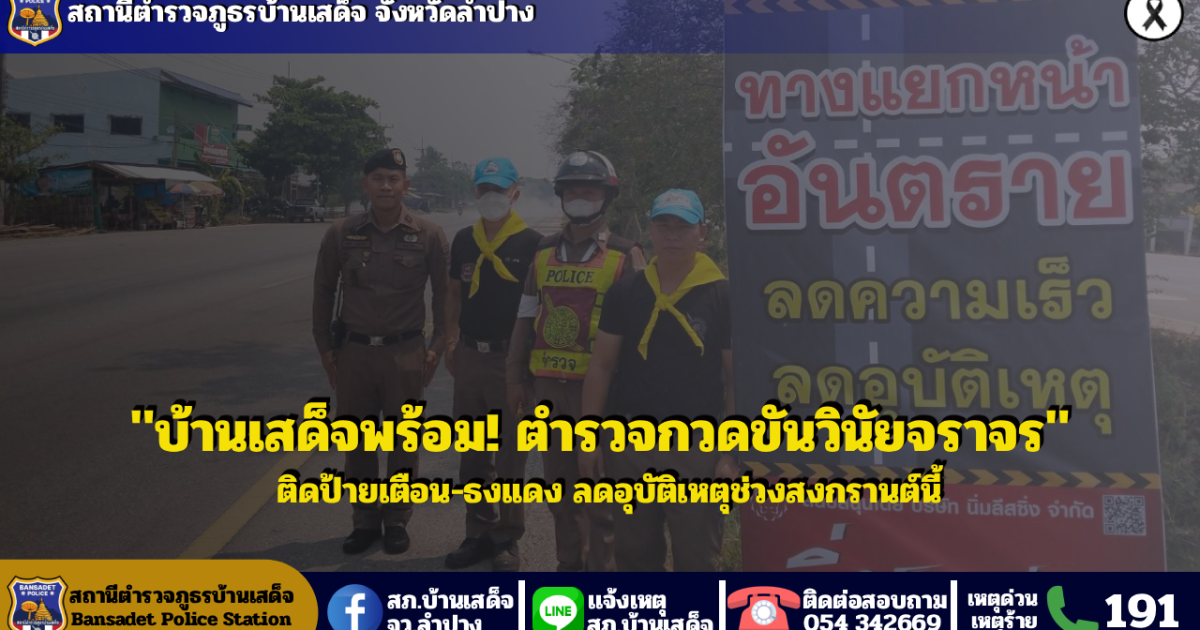 เจ้าหน้าที่ตำรวจ สภ.บ้านเสด็จ มุ่งมั่นลดอุบัติเหตุ เพื่อให้ทุกการเดินทางของท่านกลับถึงบ้านอย่างปลอดภัยครับ 🚔✨