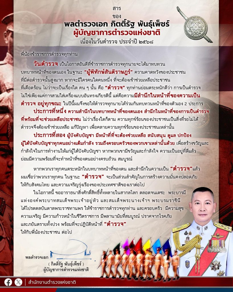 สารของ พล.ต.อ.กิตติ์รัฐ พันธุ์เพ็ชร์ ผู้บัญชาการตำรวจแห่งชาติ เนื่องใน “วันตำรวจ”