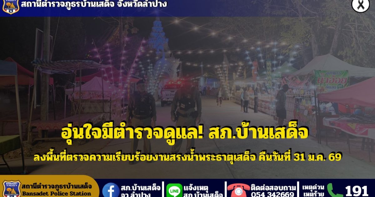 วันนี้ 31 มกราคม 2569 เวลา 20.00 น. โดยการอำนวยการของ พ.ต.อ.ชวลิต จินดารัตน์ ผกก.สภ.บ้านเสด็จ , พ.ต.ท.พงษ์ศิลป์ ธนะภาษี รอง ผกก.ป.ฯ , ว่าที่ พ.ต.ต.นพ พึ่งศรี สวป.ฯ