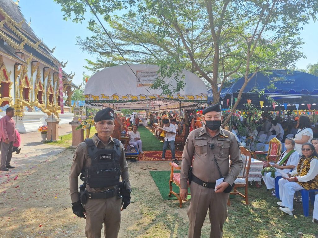 เมื่อวันที่ 24 มีนาคม 2567 เวลา 09.09 น. พ.ต.อ.ชวลิต จินดารัตน์ผกก.สภ.บ้านเสด็จ ,พ.ต.ท.บรรจง เรืองสุข รอง ผกก.สอบสวนฯ. พร้อม ร้อยเวร 20 สายตรวจ 201 ว.4 เข้าร่วมงานและดูแลความสงบเรียบร้อยงานยกยอดฉัตรพระธาตุเจดีย์ศรีไม้ซ้อ และฉลองพระธาตุเจดีย์ไม้ซ้อ ณ วัดพระเจ้าไม้ซ้อ ม.12 บ้านเมาะพัฒนา ต.บ้านเสด็จ