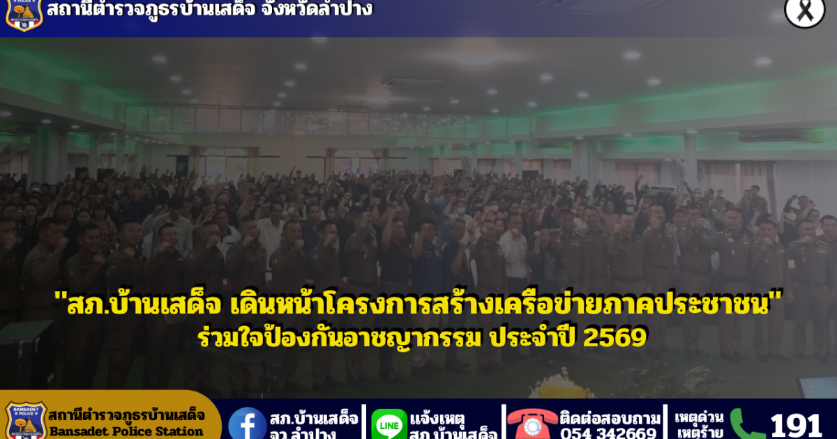 วันที่ 2 เม.ย.69 เวลา 09.00 น. นำโดย พ.ต.อ.ชวลิต จินดารัตน์ ผกก.สภ.บ้านเสด็จ , พ.ต.ท.พงษ์ศิลป์ ธนะภาษี รอง ผกก.ป.สภ.บ้านเสด็จ ,พ.ต.ต.นพ พึ่งศรี สวป.ฯ พร้อมด้วย ชุดชุมชนสัมพันธ์ สภ.บ้านเสด็จ และ เครือข่ายประชาชน สภ.บ้านเสด็จ เข้าร่วมอบรม โครงการสร้างเครือข่ายการมีส่วนร่วมของประชาชน ในการแก้ไขปัญหาความเดือดร้อนของประชาชนในระดับสถานีตำรวจ เพื่อสนับสนุนการป้องกันอาชญากรรม ประจำปีงบประมาณ 2569