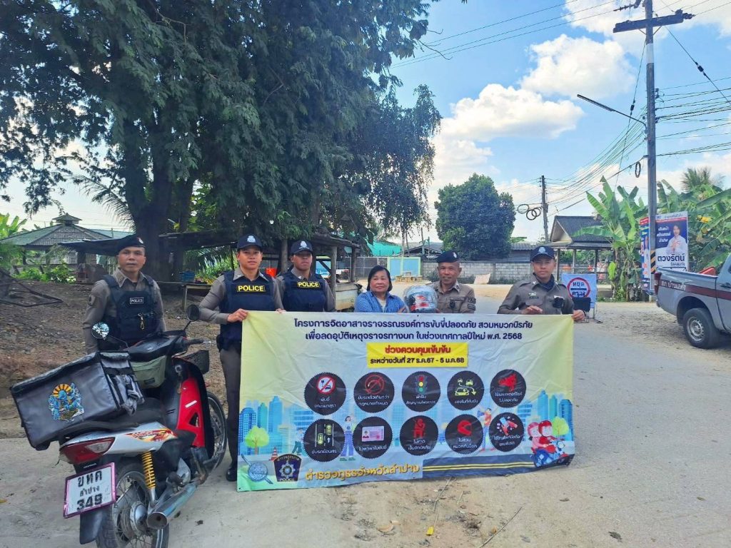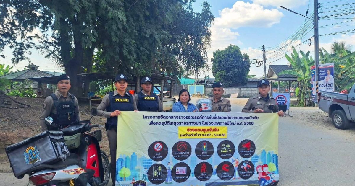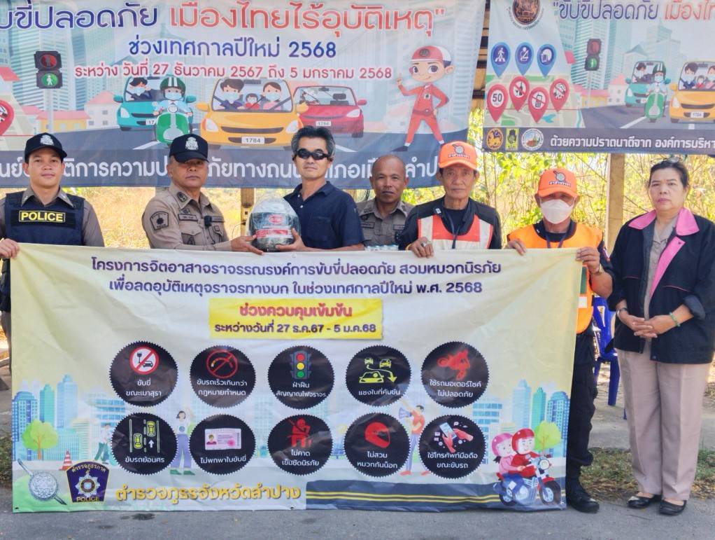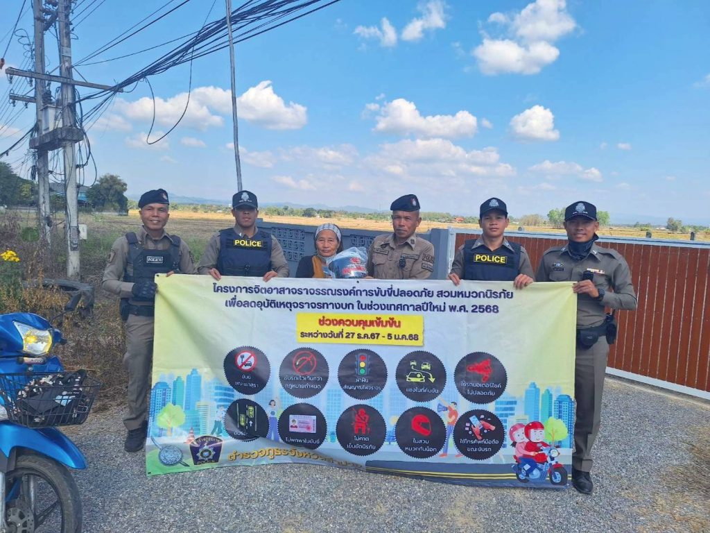 วันนี้ 3 ม.ค.2568 ตั้งแต่เวลา 10.00 น.โดยการสั่งการของ พ.ต.อ.ชวลิต จินดารัตน์ ผกก.สภ.บ้านเสด็จพ.ต.ท.พงษ์ศิลป์ คณะภาษี รองผกก.ป. มอบหมายให้ พ.ต.ท.โสกิจ วรวงศ์ สวปฯ พร้อมกำลังสายตรวจ สภ.บ้านเสด็จ นักเรียนนายสิบฝึกงานร่วมกัน ตั้งจุดตรวจกวดขันวินัยจราจร เพื่อเป็นการป้องกันและลดอุบัติเหตุทางถนนในช่วงเทศกาลส่งท้ายปีเก่าต้อนรับปีใหม่ 2568 มีผลการจับกุมผู้ฝ่าฝืนและว่ากล่าวตักเตือนให้ความรู้กฎจราจรพร้อมกับมีการแจกหมวกนิรภัยตามโครงการจิตอาสาจราจรรณรงค์ขับขี่ปลอดภัยสวมหมวกนิรภัยเพื่อลดอุบัติเหตุจราจรทางบกในช่วงเทศกาลปีใหม่ 2568