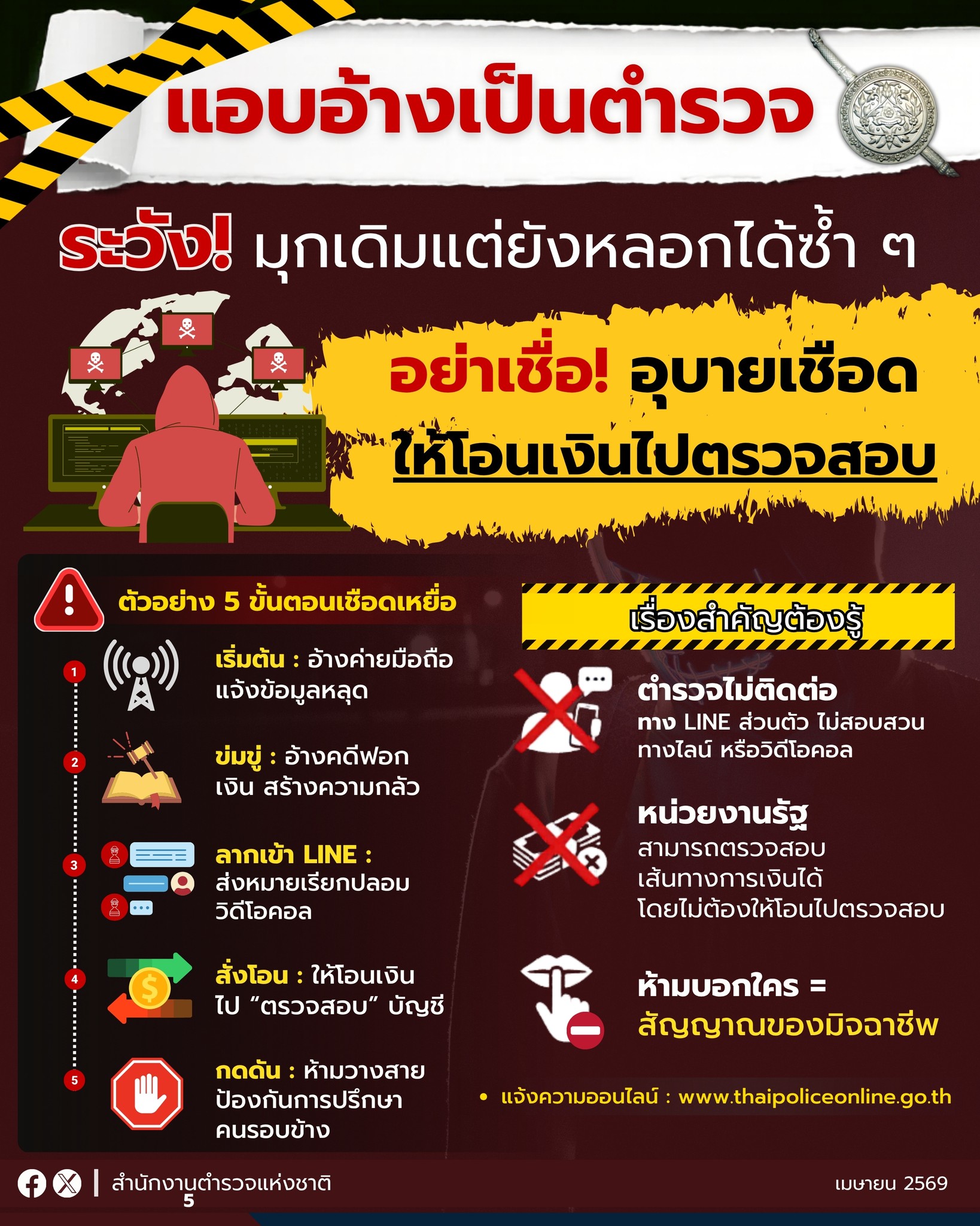 แอบอ้างเป็นตำรวจ มุกเดิม ๆ ของมิจฉาชีพที่ยังหลอกเหยื่อได้ซ้ำ ๆ